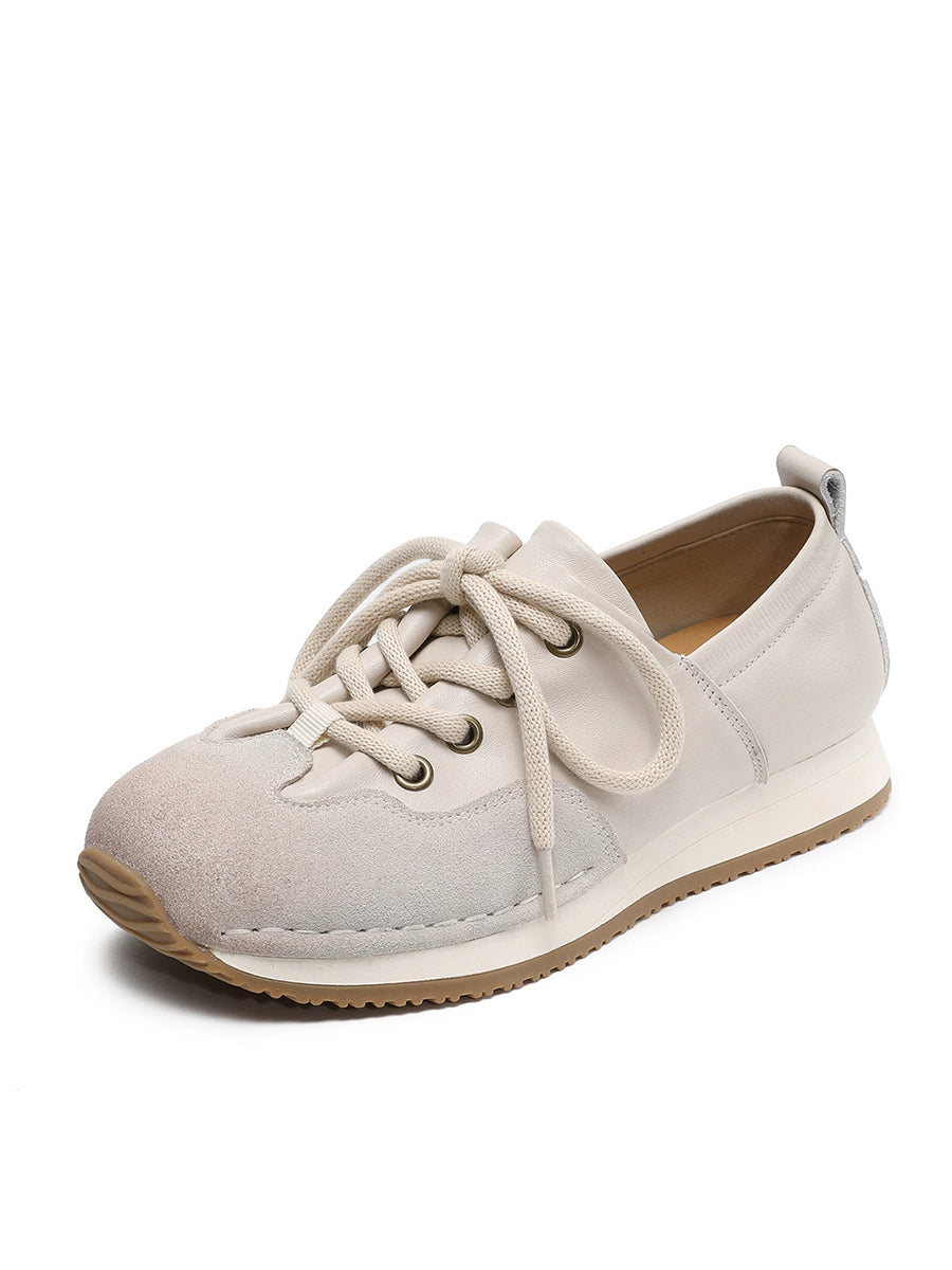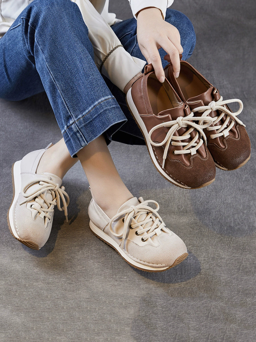 Women Vintage Genuine Leather Spliced Shoes