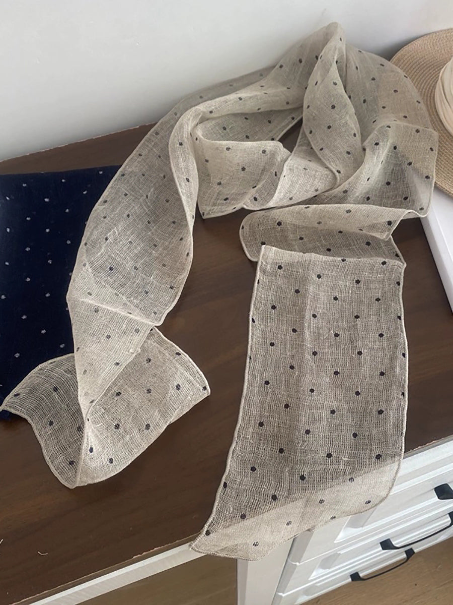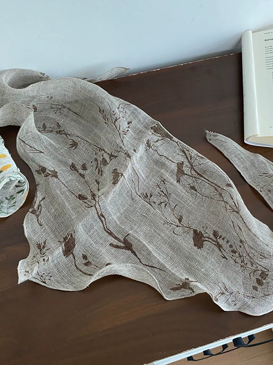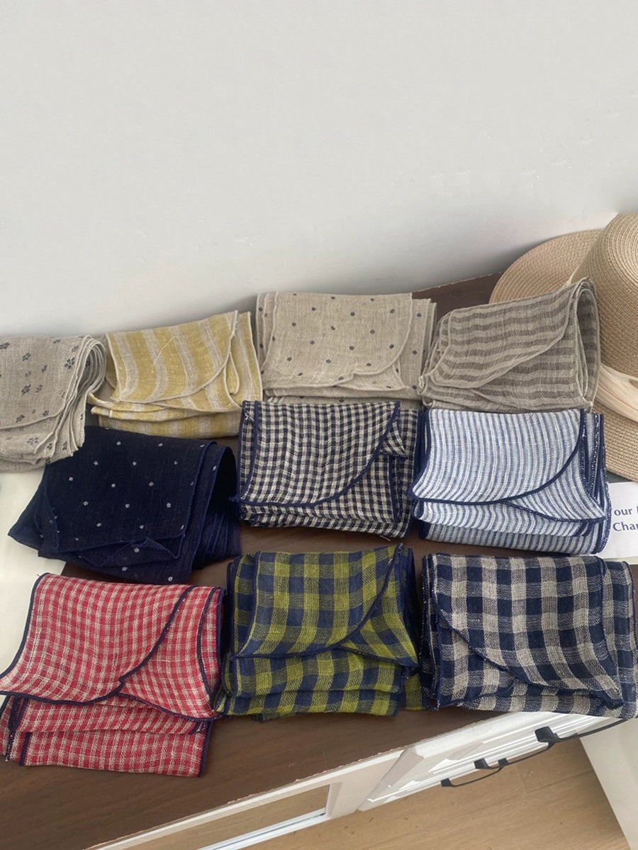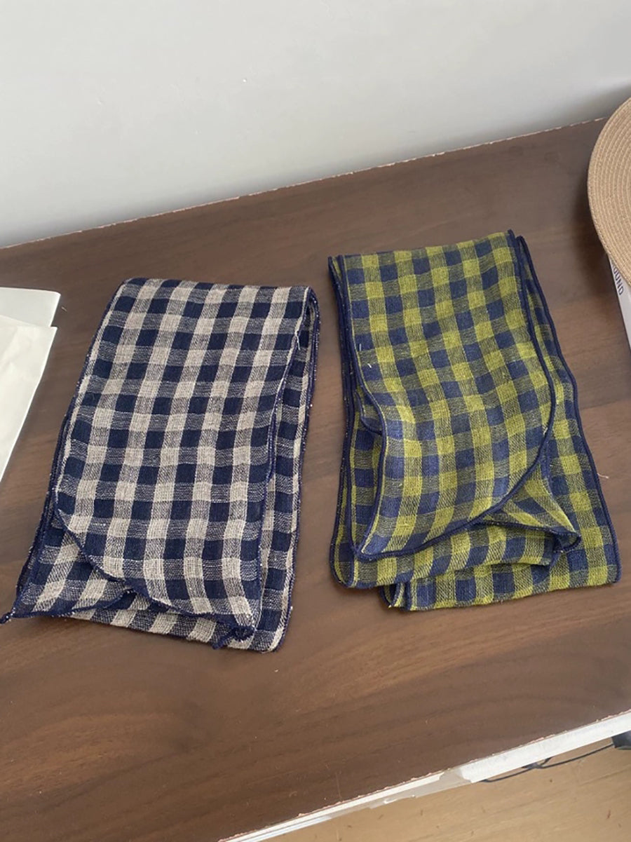 Women Vintage Plaid 100%Linen Thin Scarf