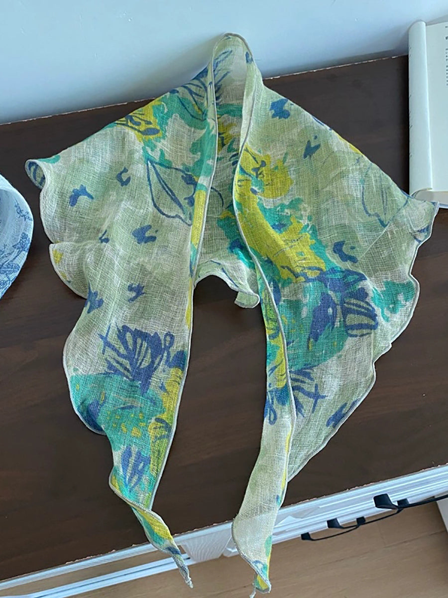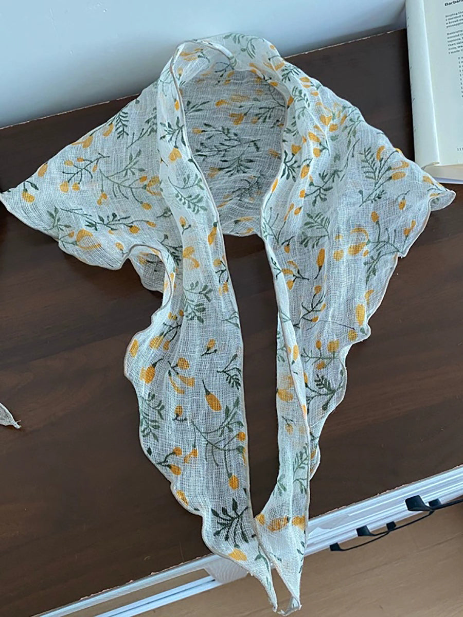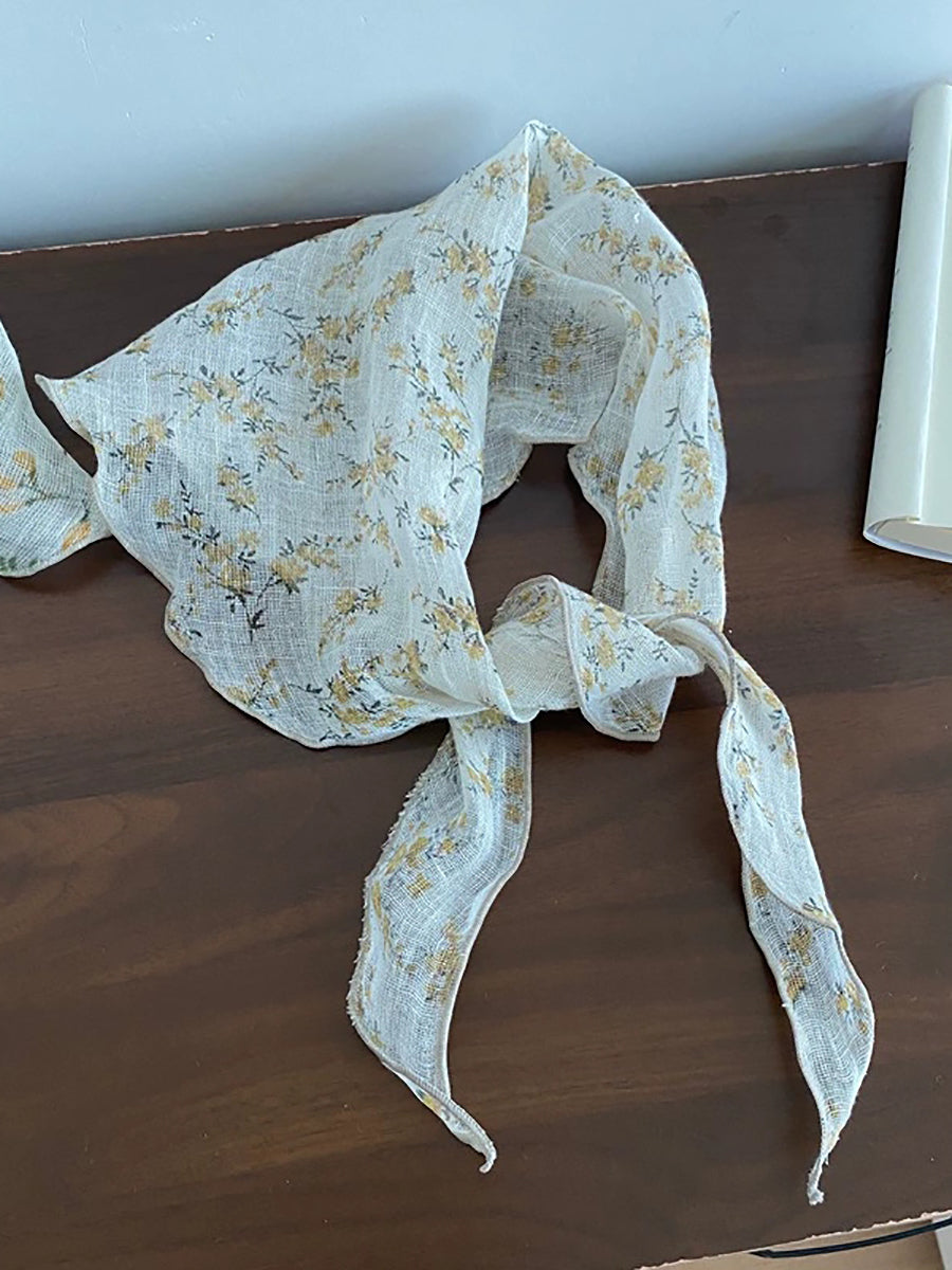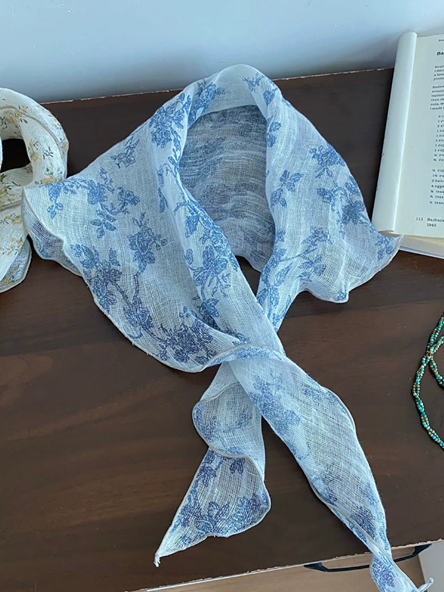 Women Vintage Plaid 100%Linen Thin Scarf