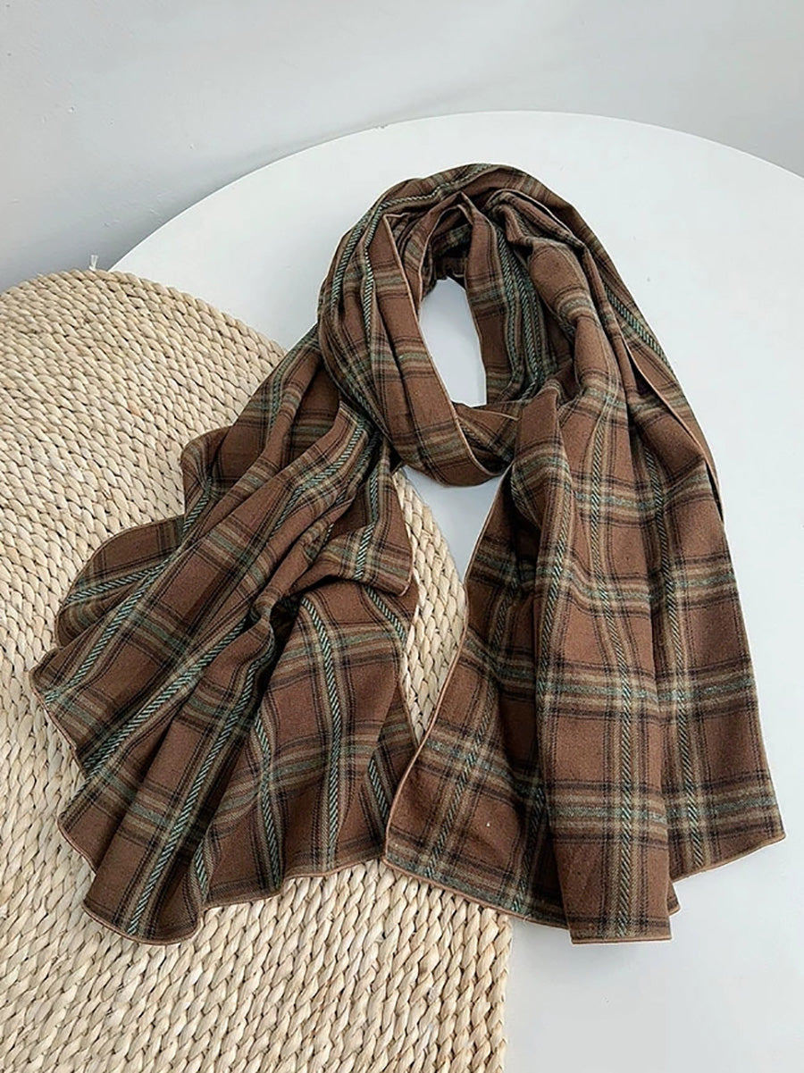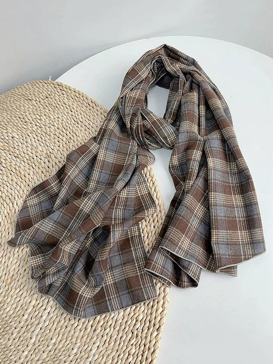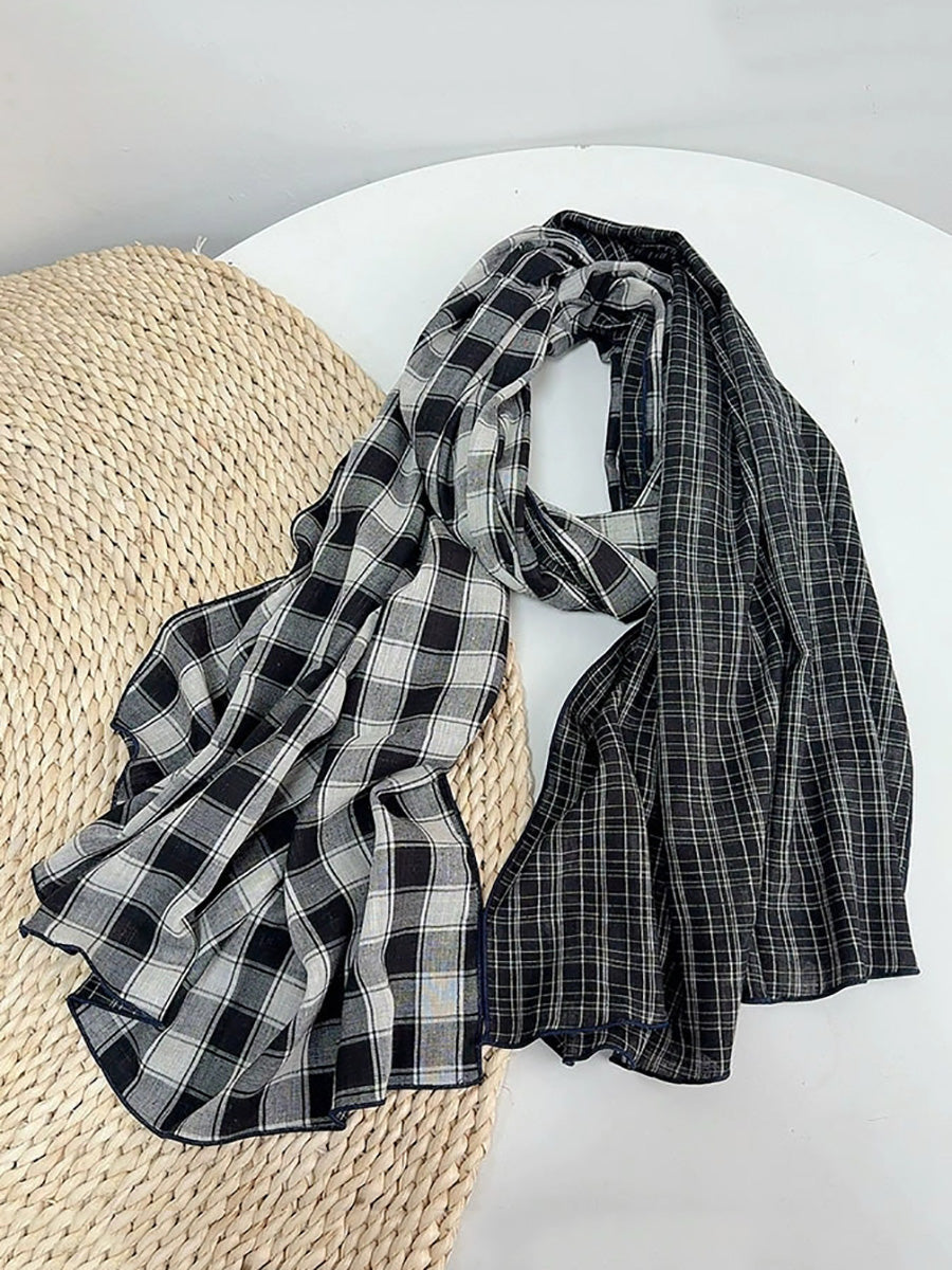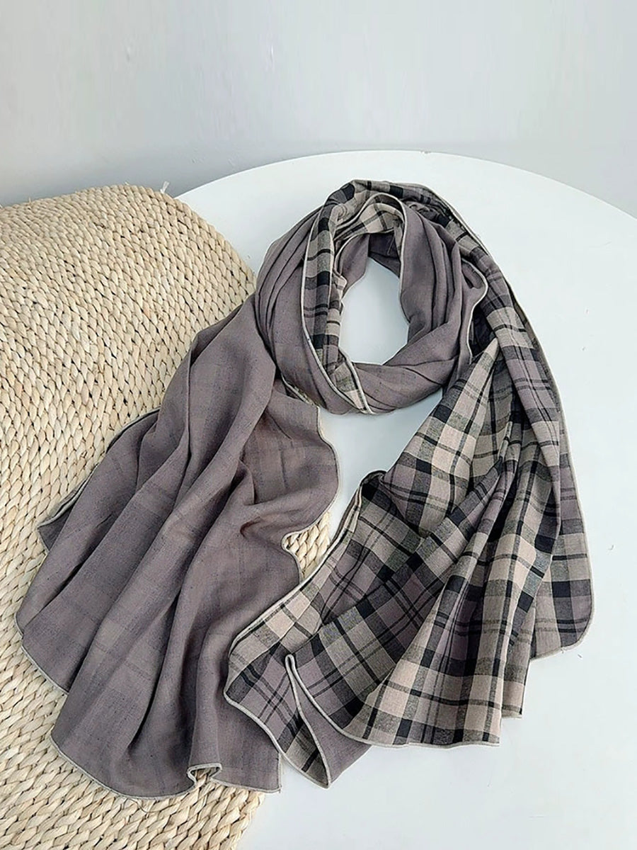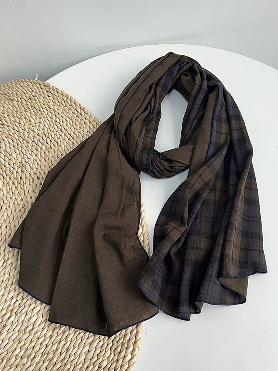 Women Vintage Plaid Spliced Shawl Scarf