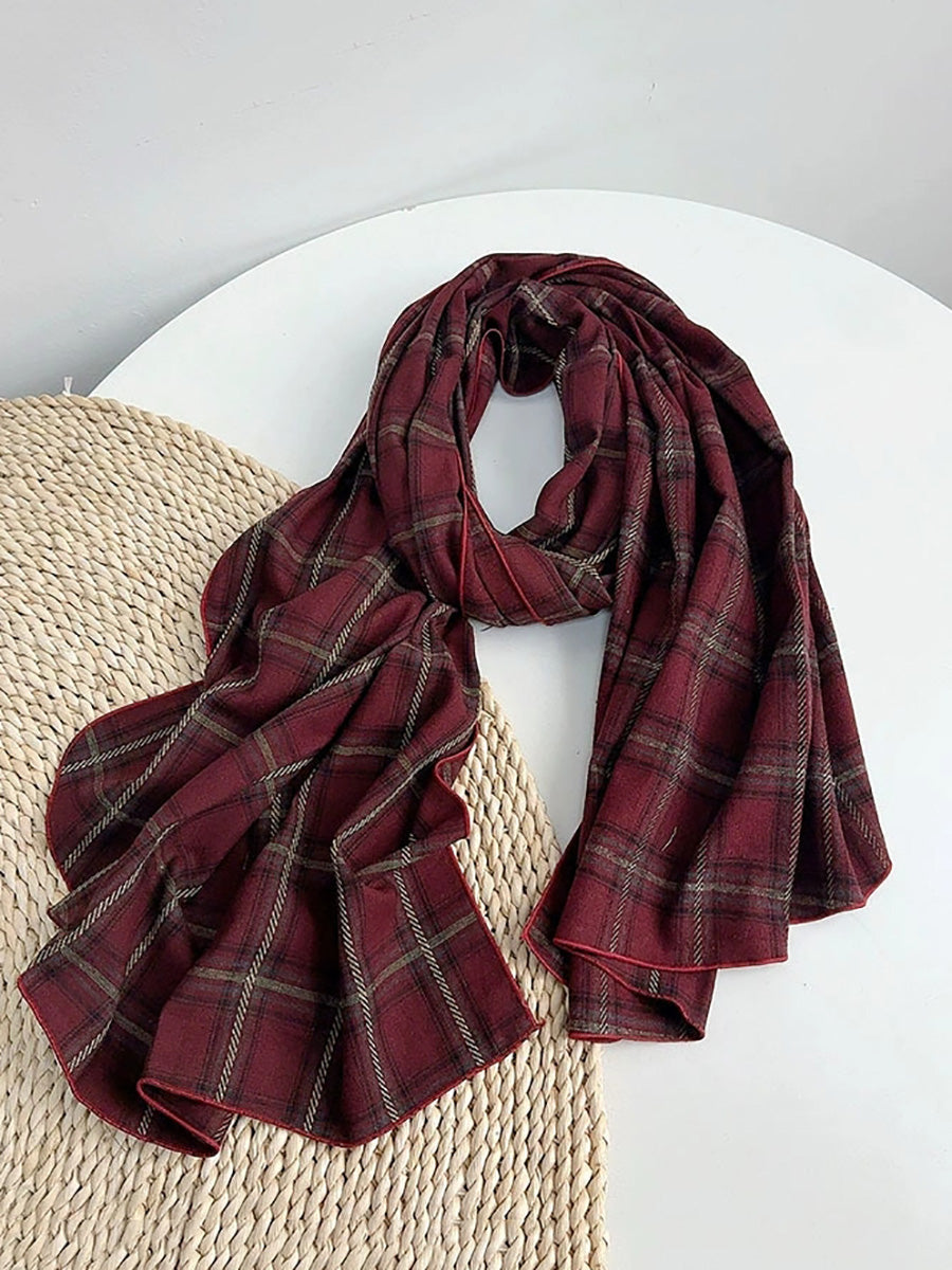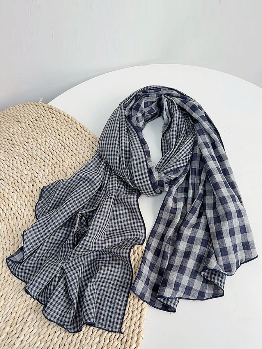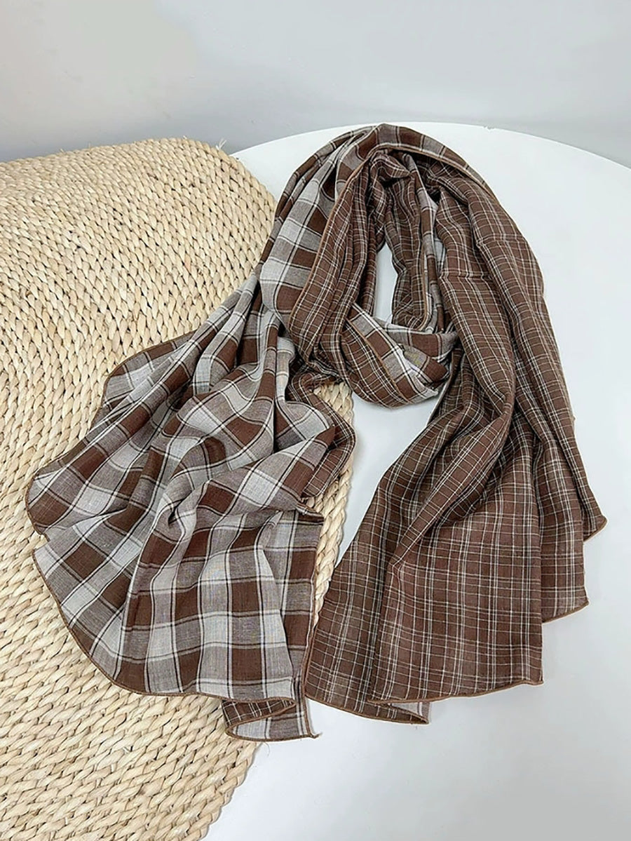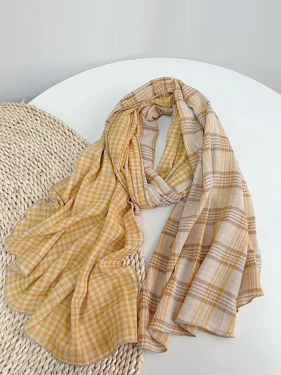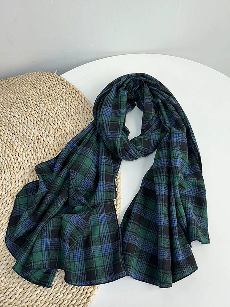 Women Vintage Plaid Spliced Shawl Scarf