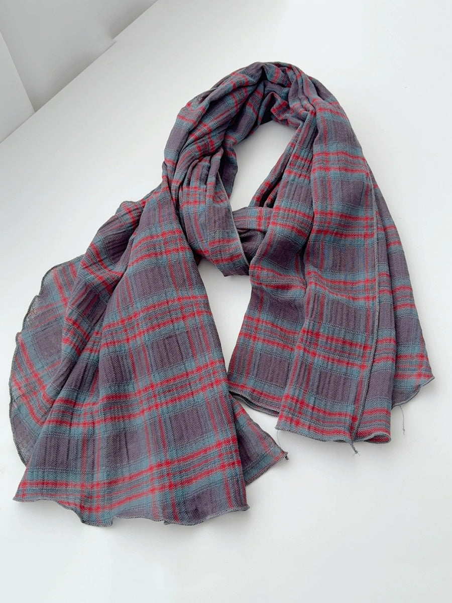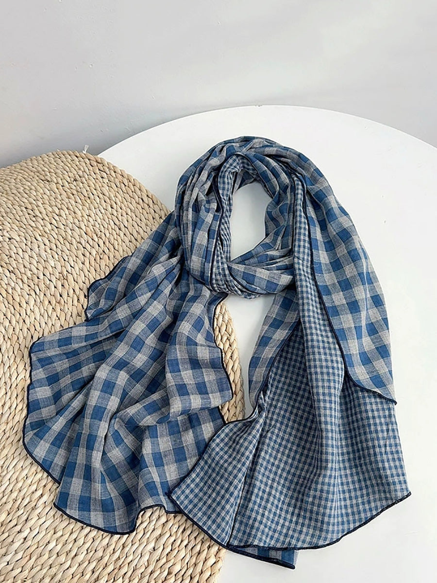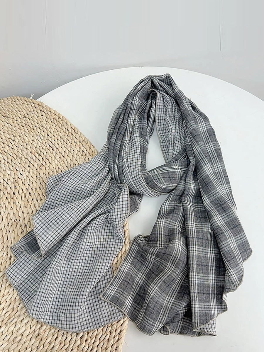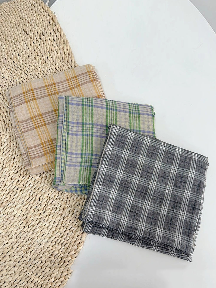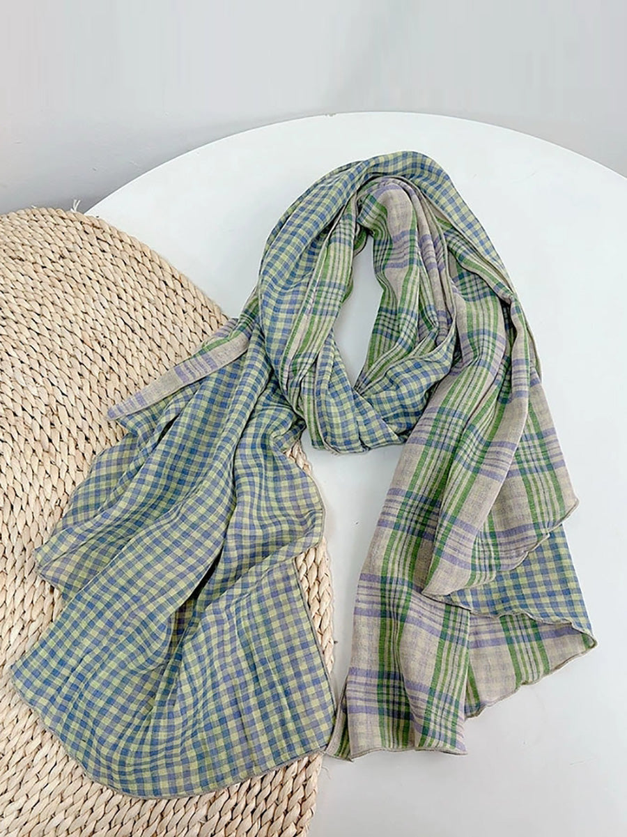 Women Vintage Plaid Spliced Shawl Scarf