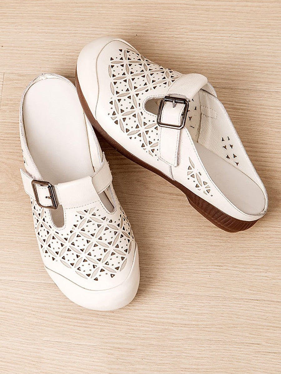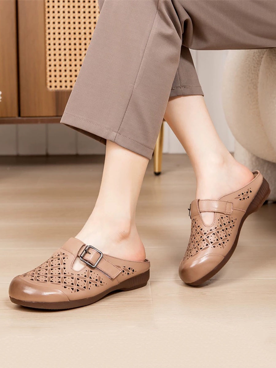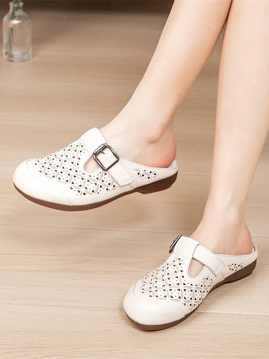 Women Vintage Summer Hollow Out Leather Slippers