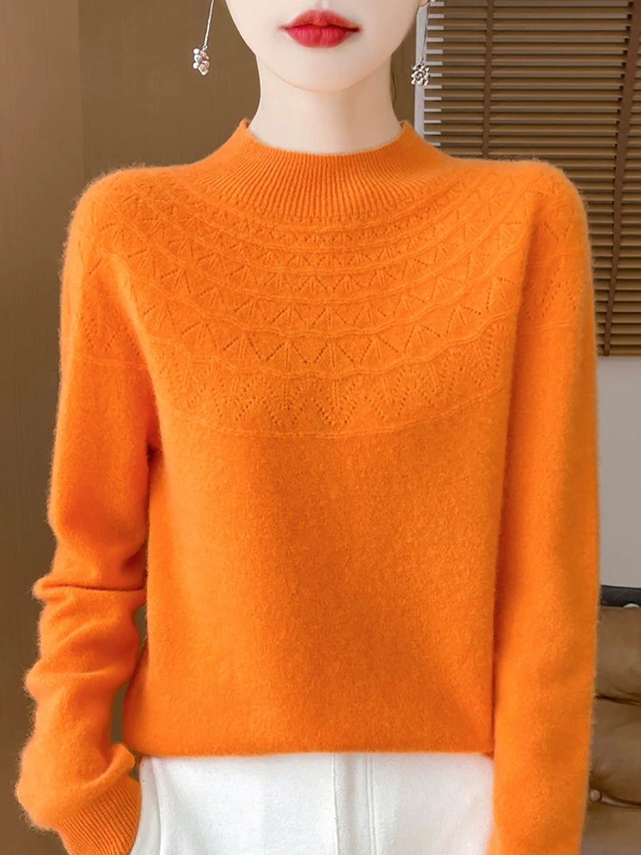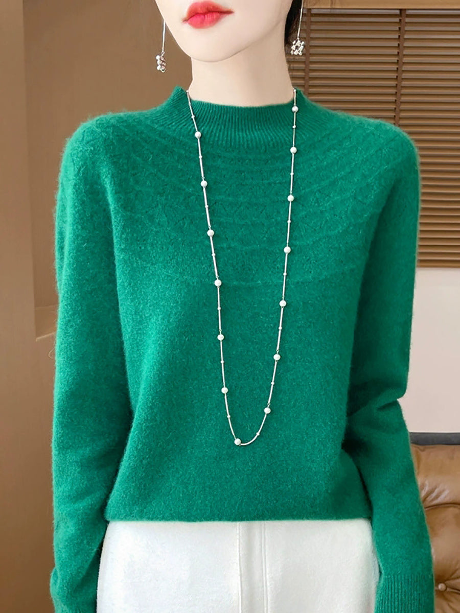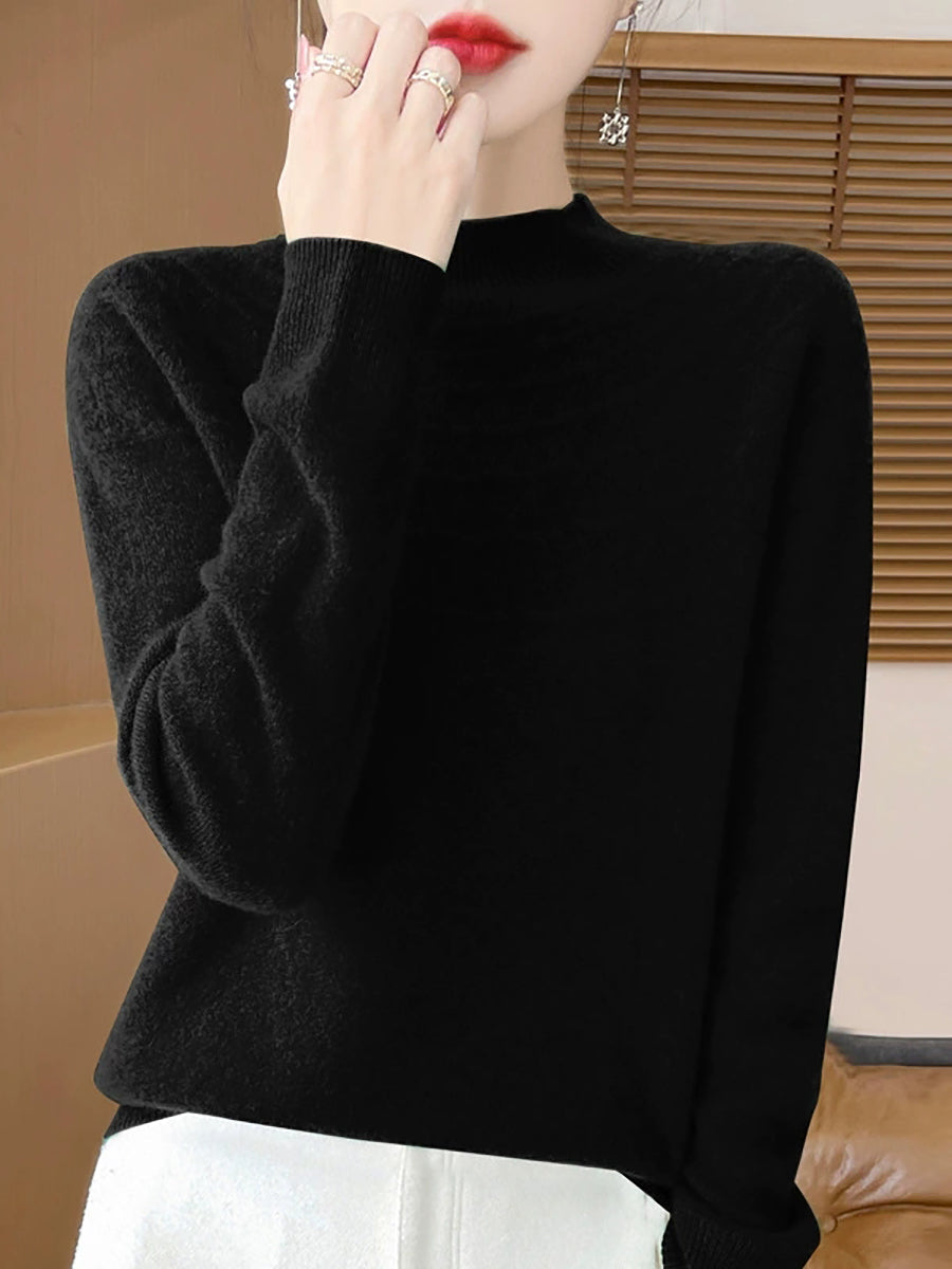 Women Winter Artsy Pure Color Half-Turtleneck Sweater