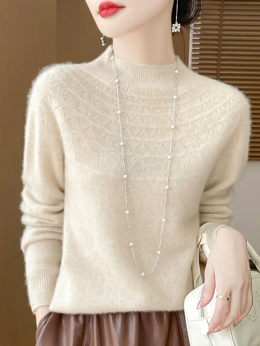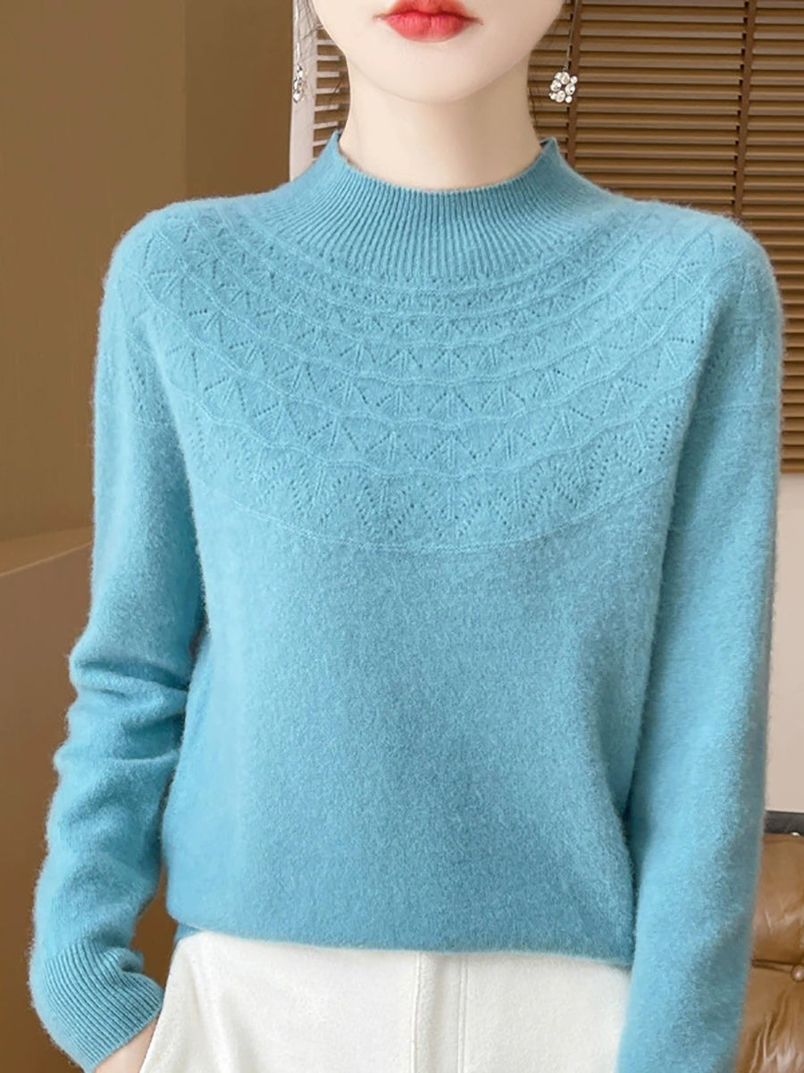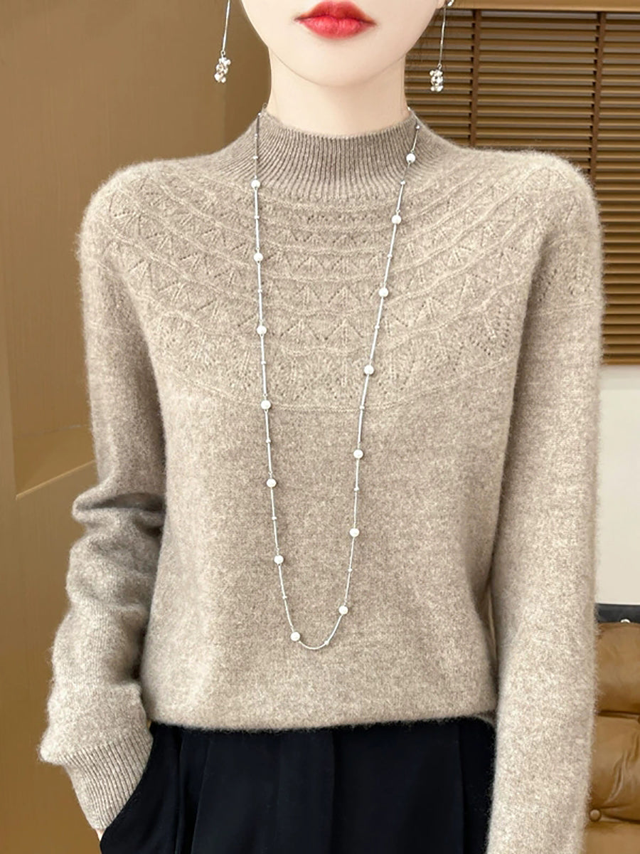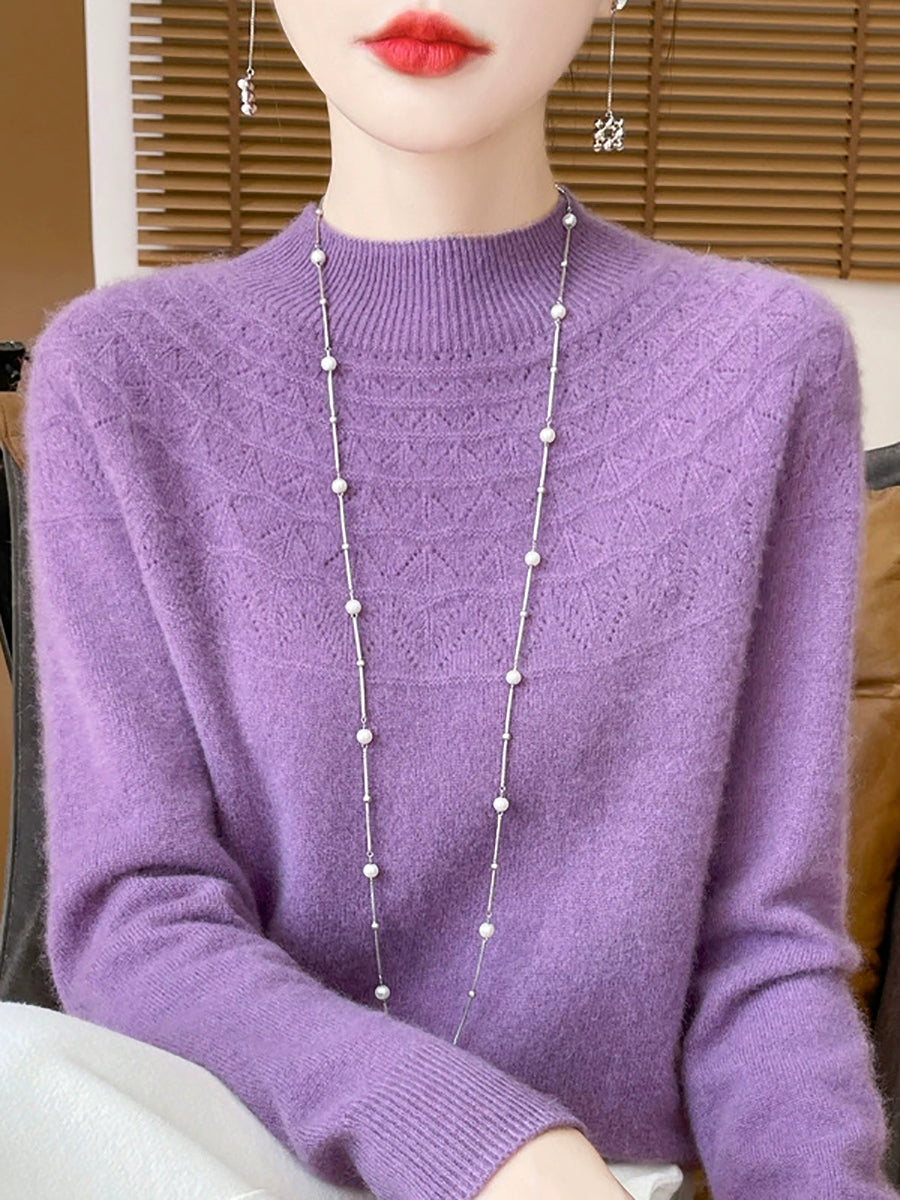 Women Winter Artsy Pure Color Half-Turtleneck Sweater
