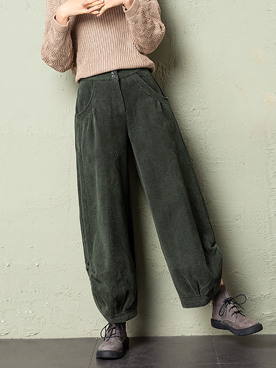 Plus Size Women Winter Casual Pure Color Corduroy Bloomers