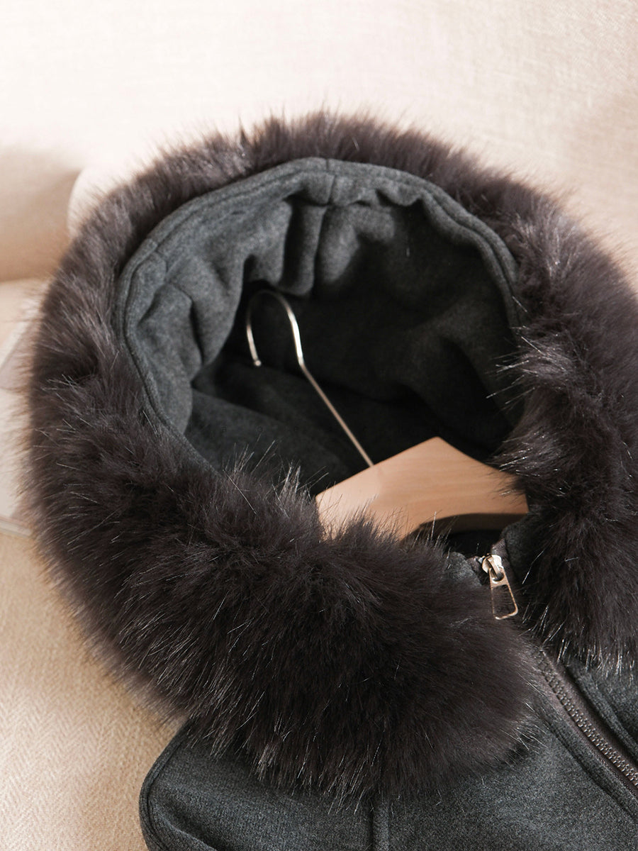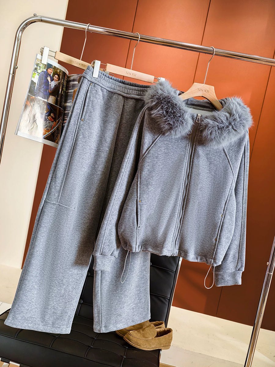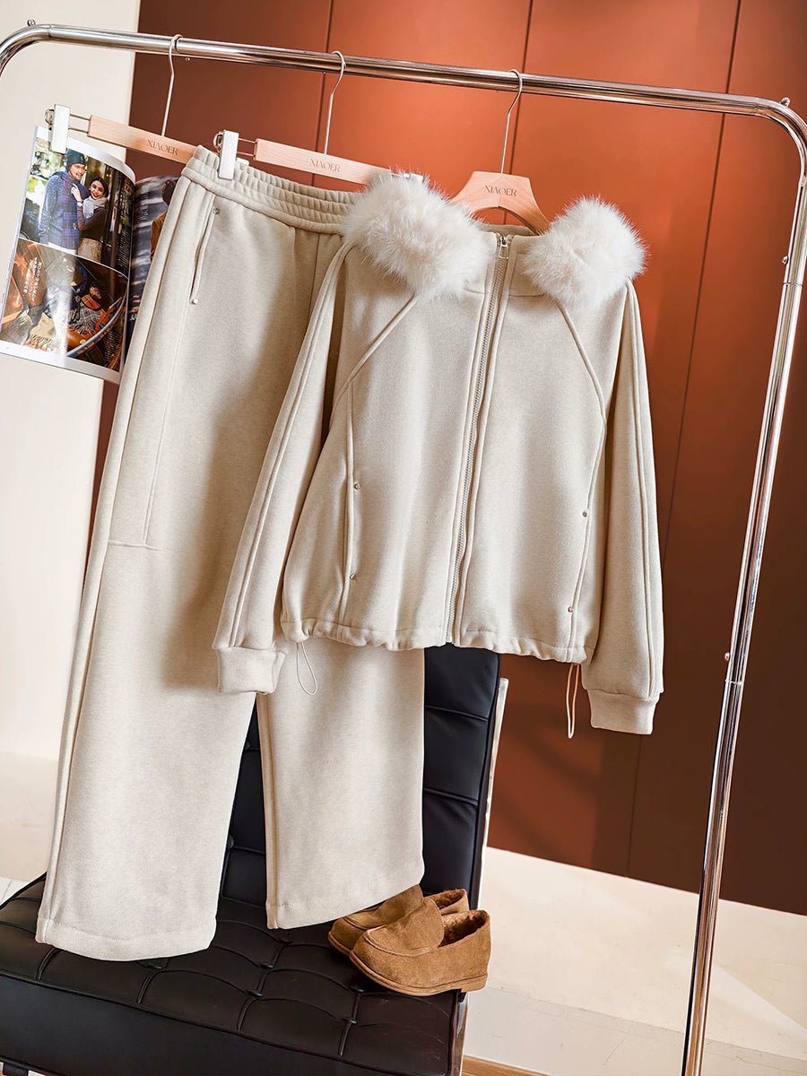 Women Winter Casual Pure Color Hooded Suits