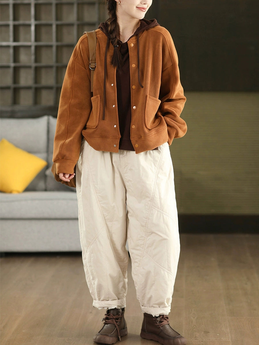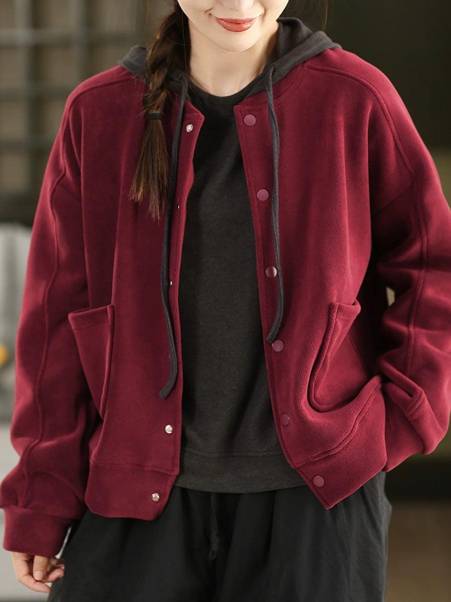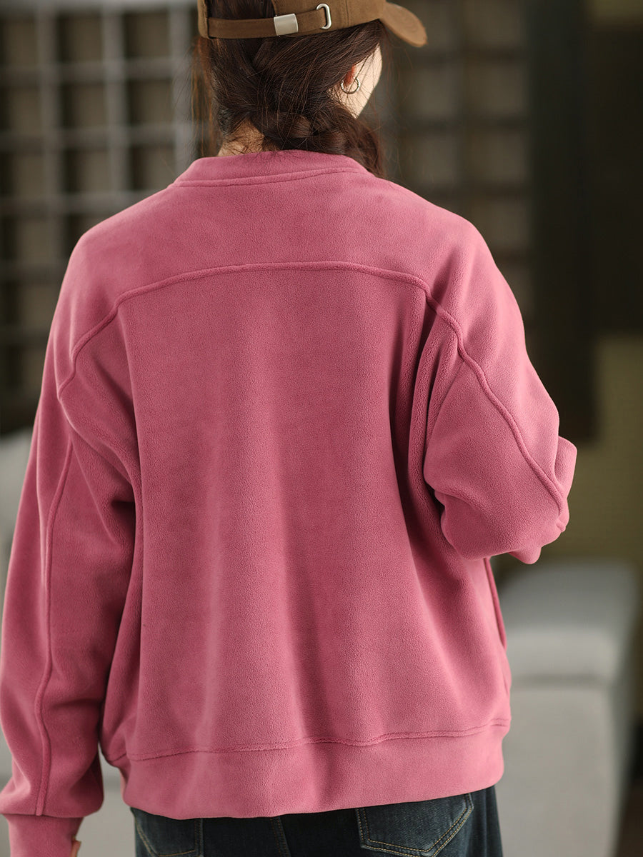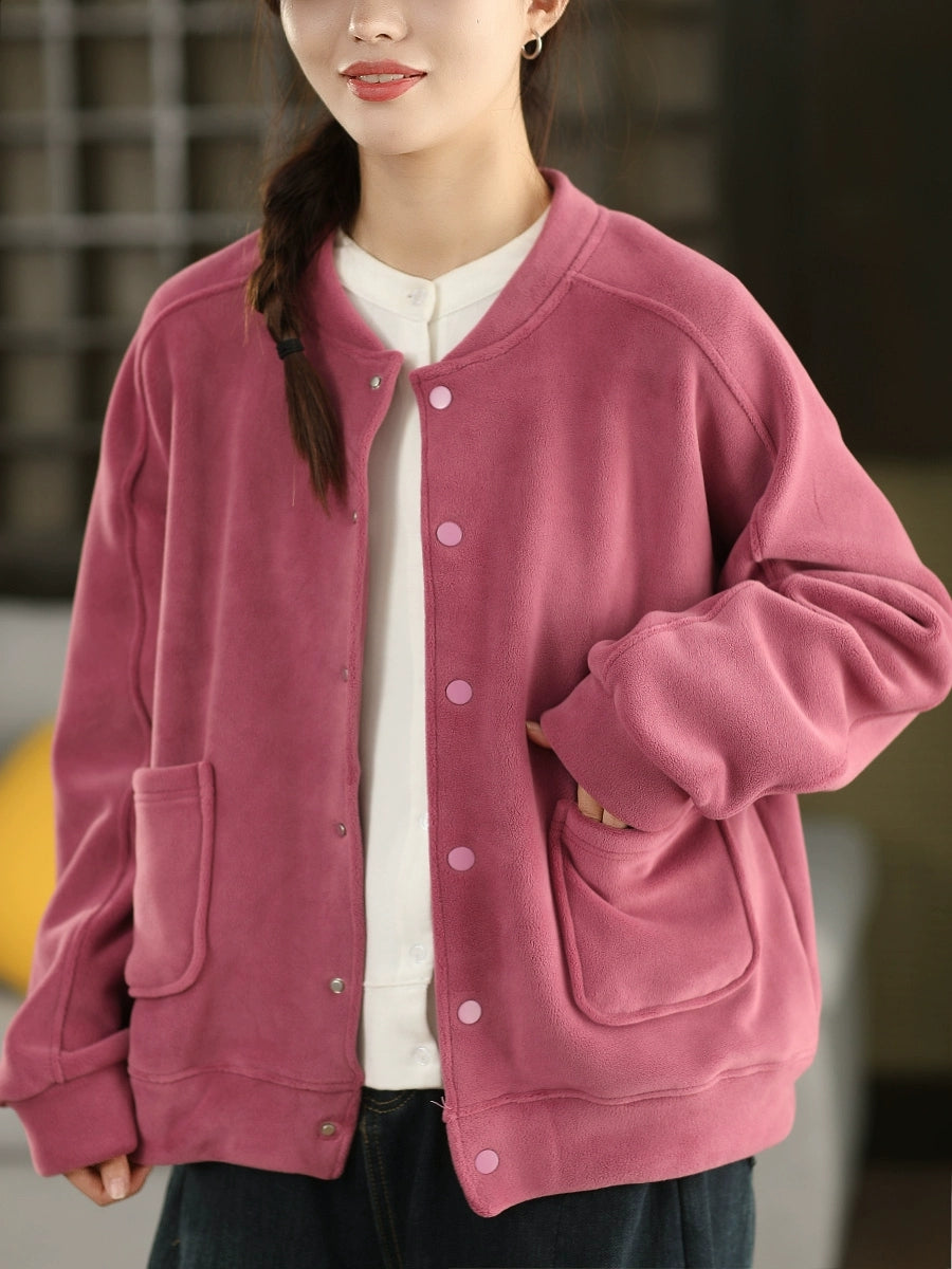 Women Winter Casual Pure Color O-Neck Fleece Coat