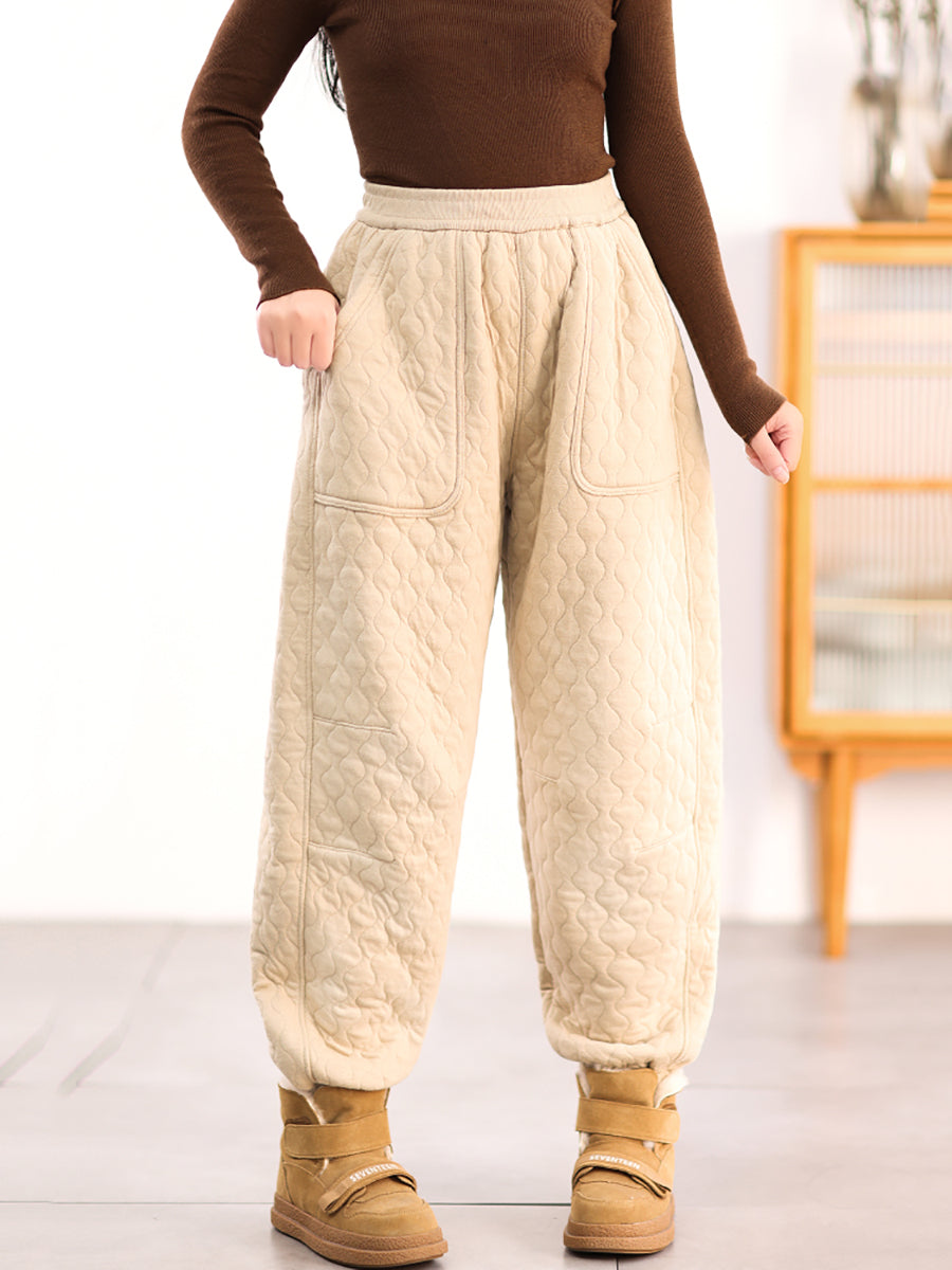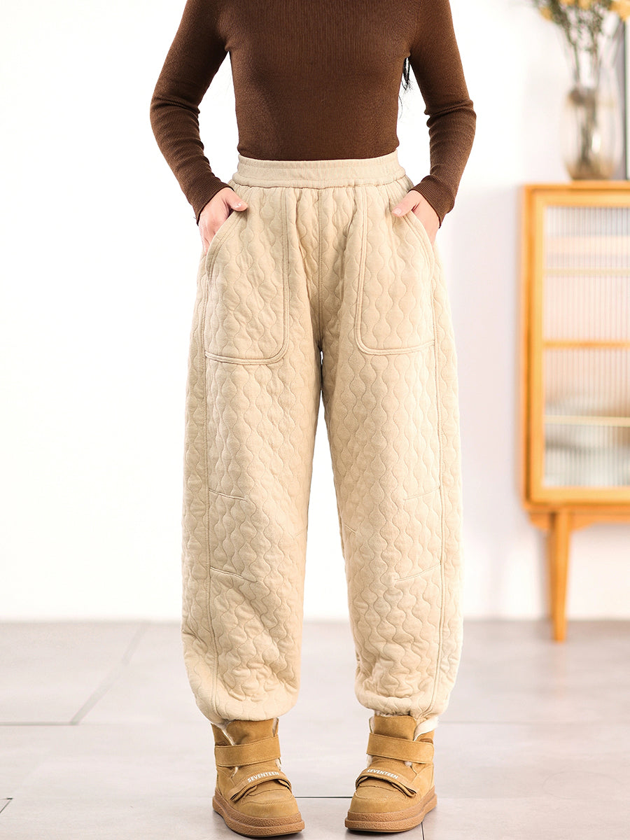 Women Winter Casual Pure Color Padded Harem Pants