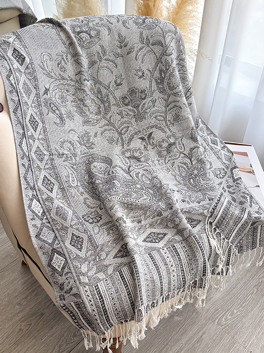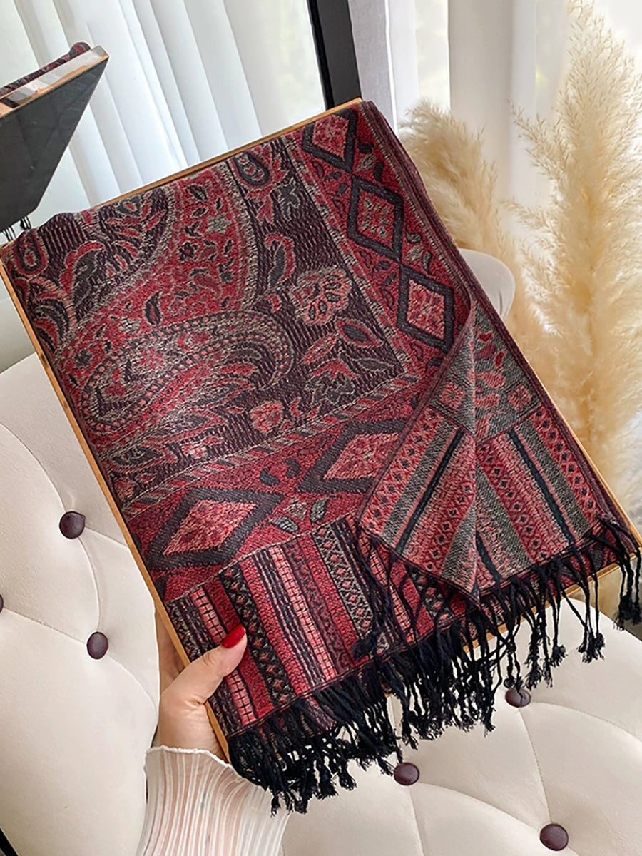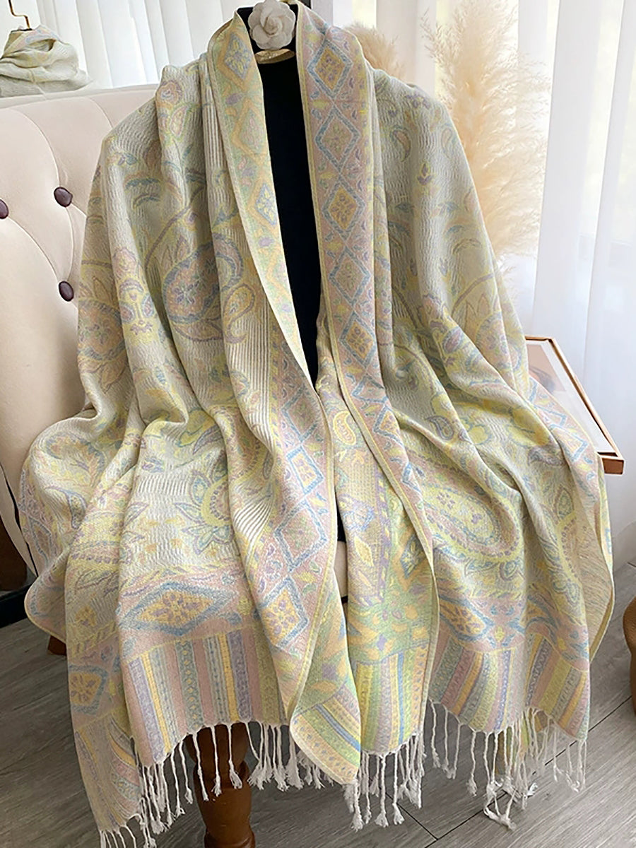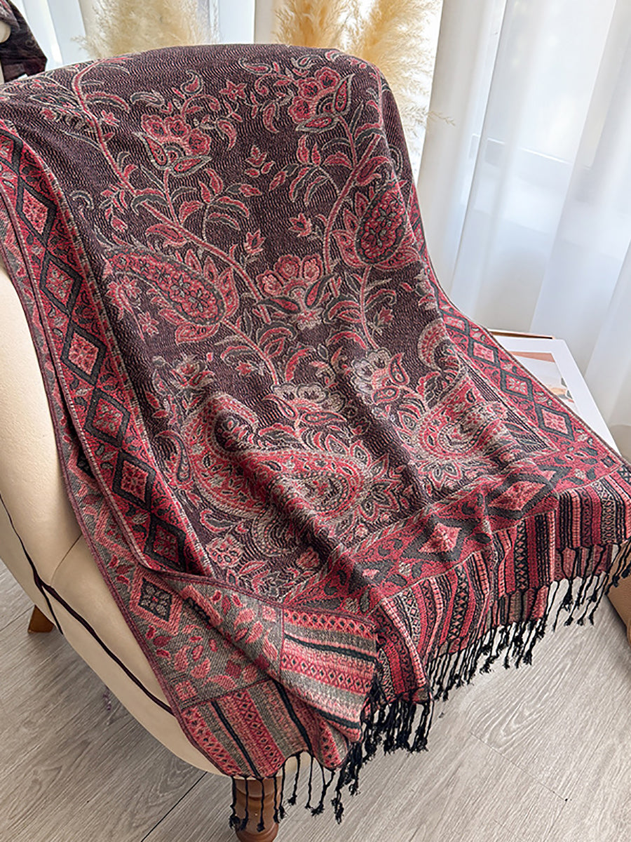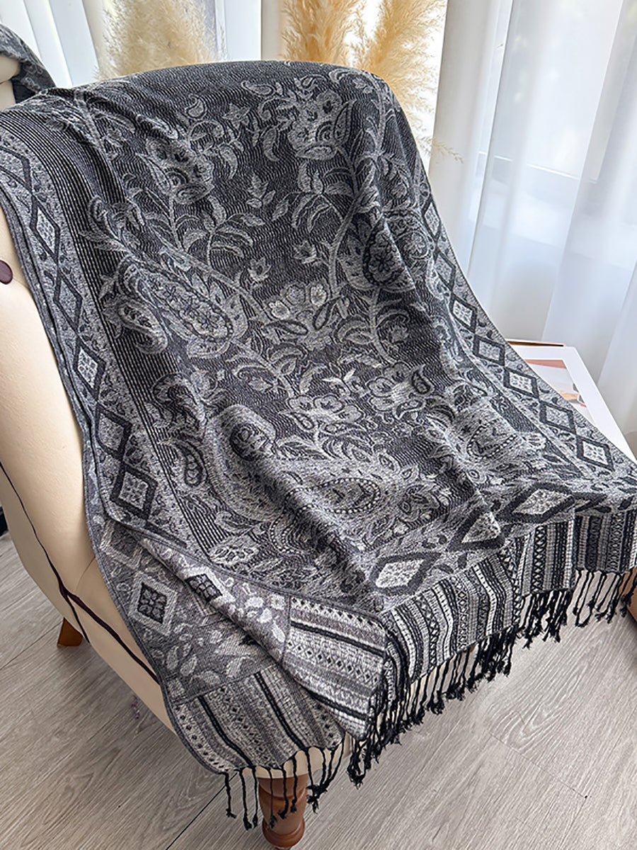 Women Winter Flower Jacquard Tassel Shawl Scarf