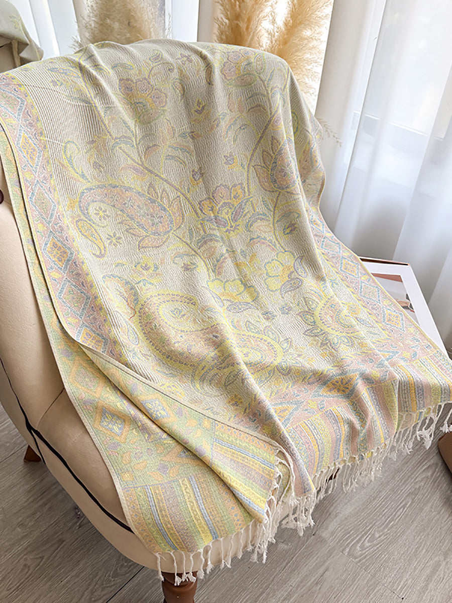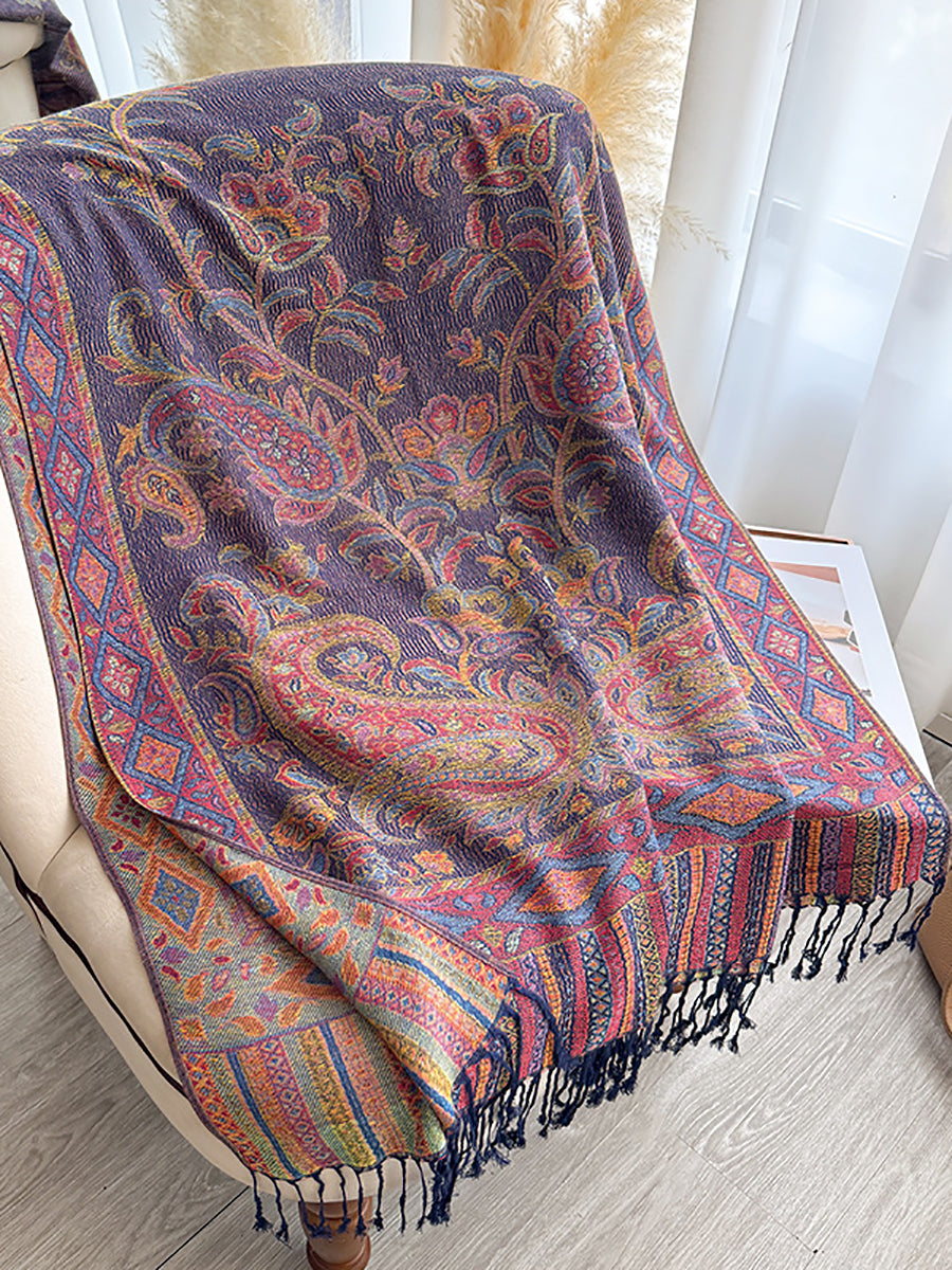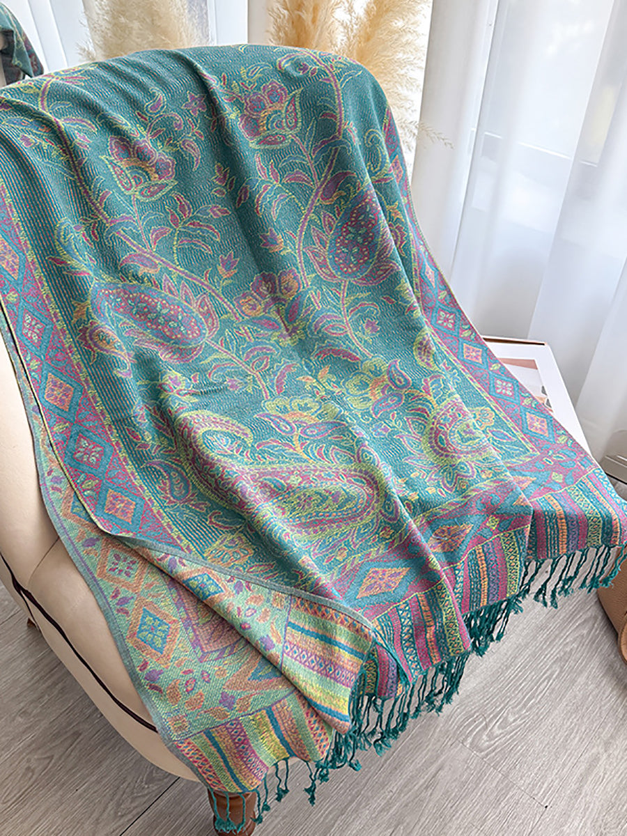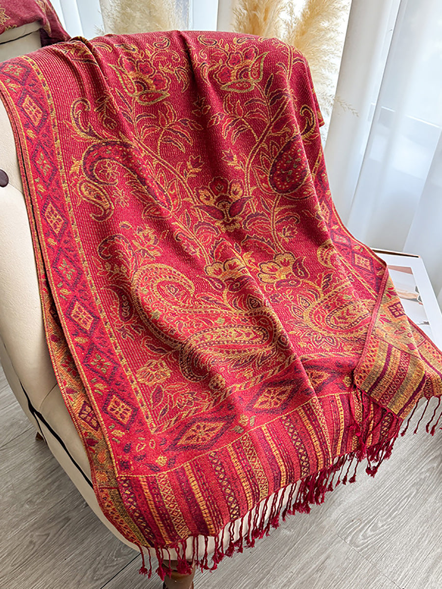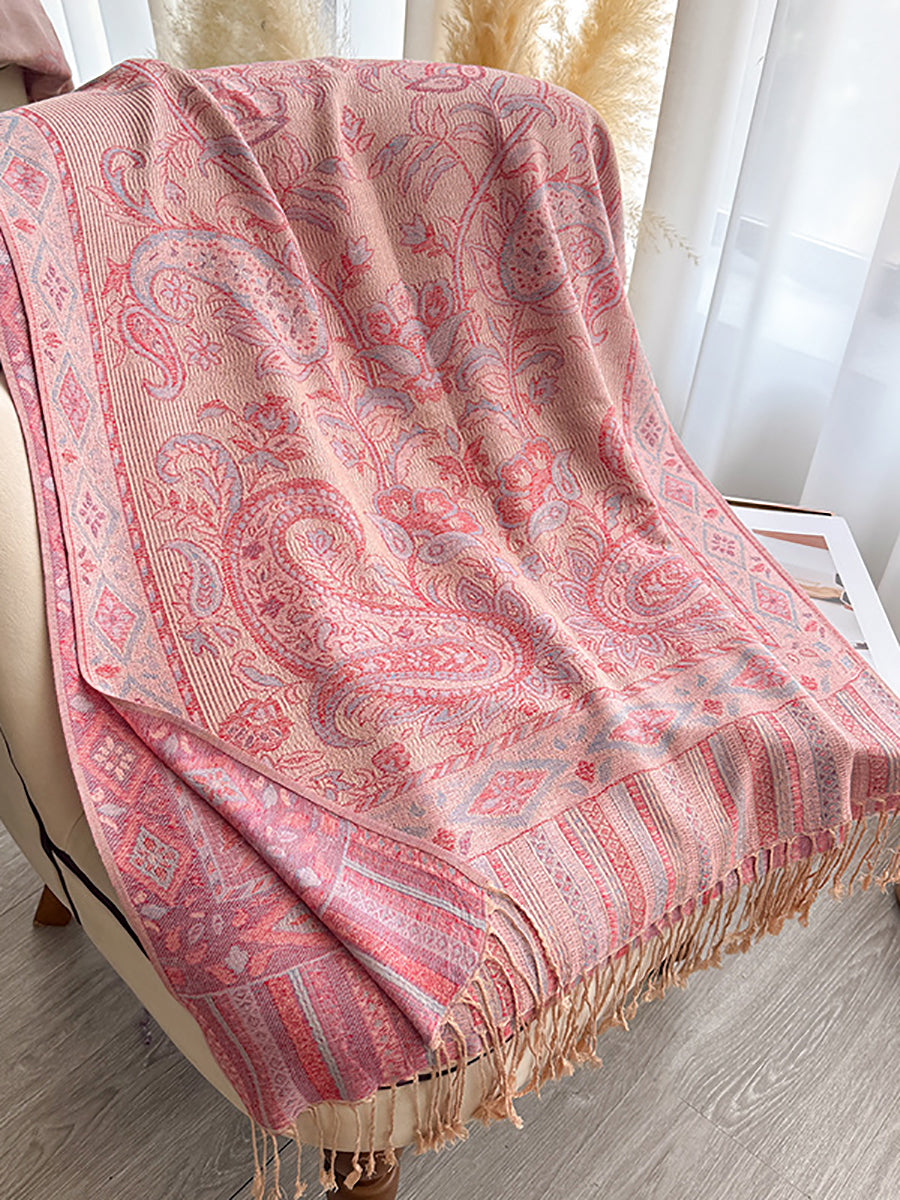 Women Winter Flower Jacquard Tassel Shawl Scarf