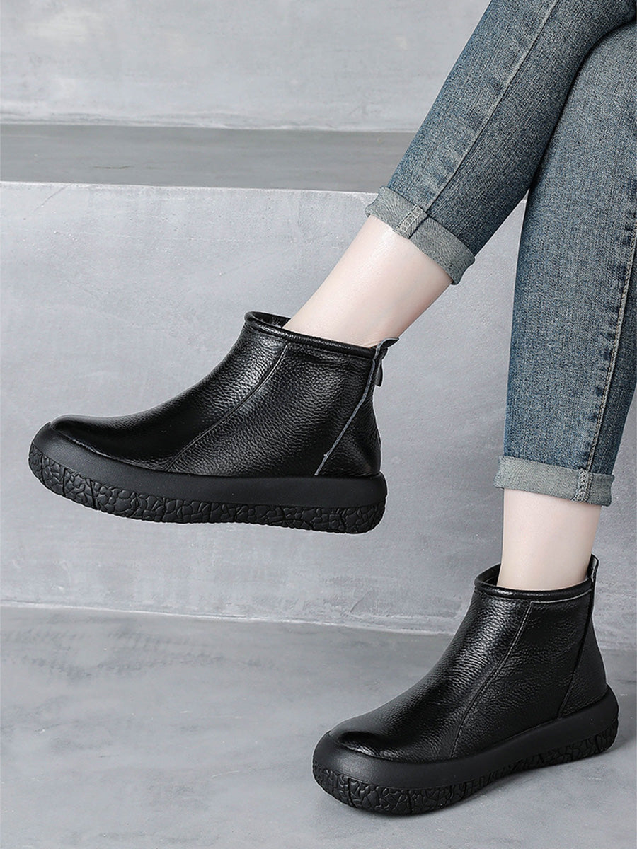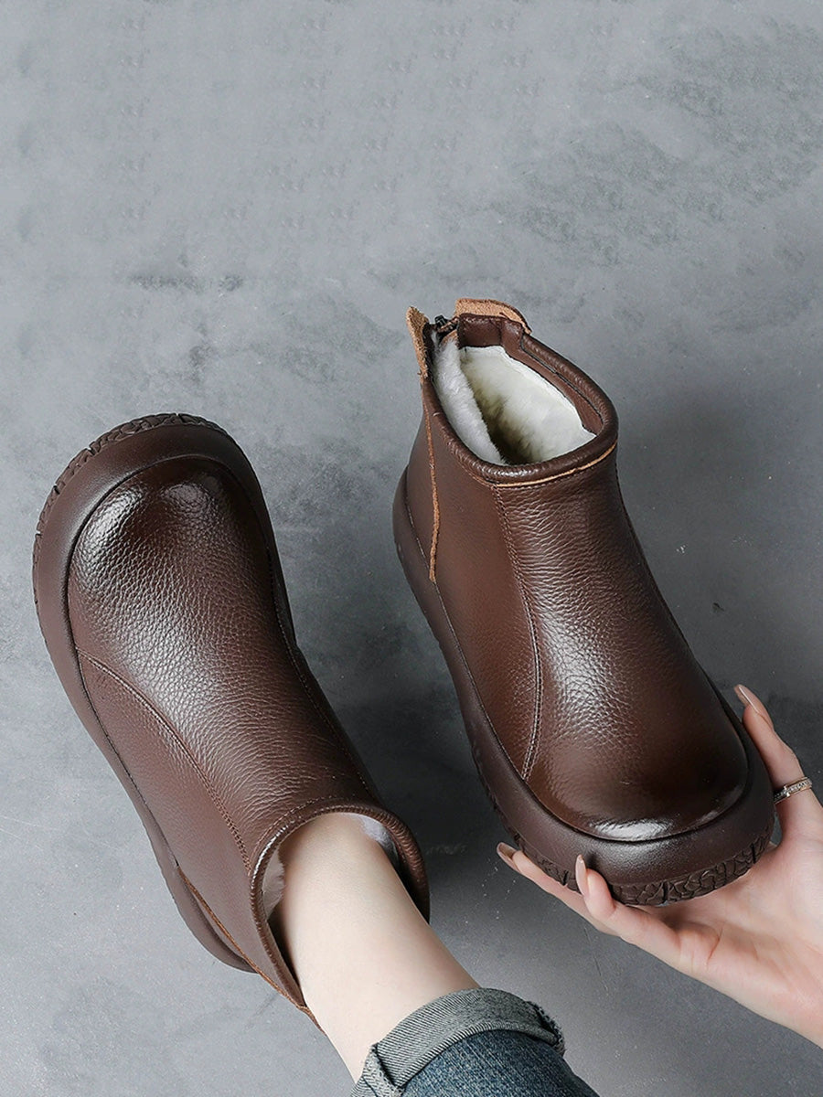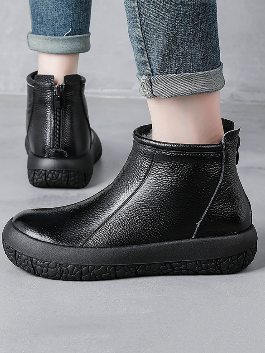 Women Winter Genuine Leather Fleece-lined Ankle Boots