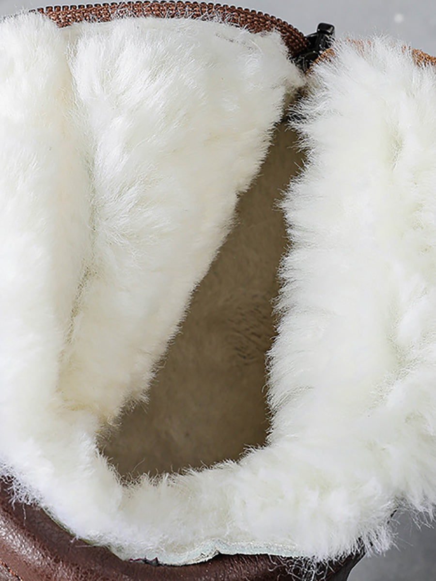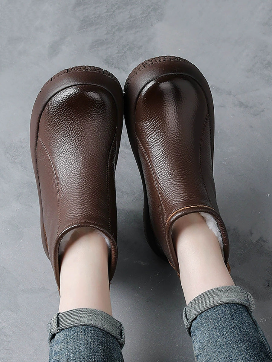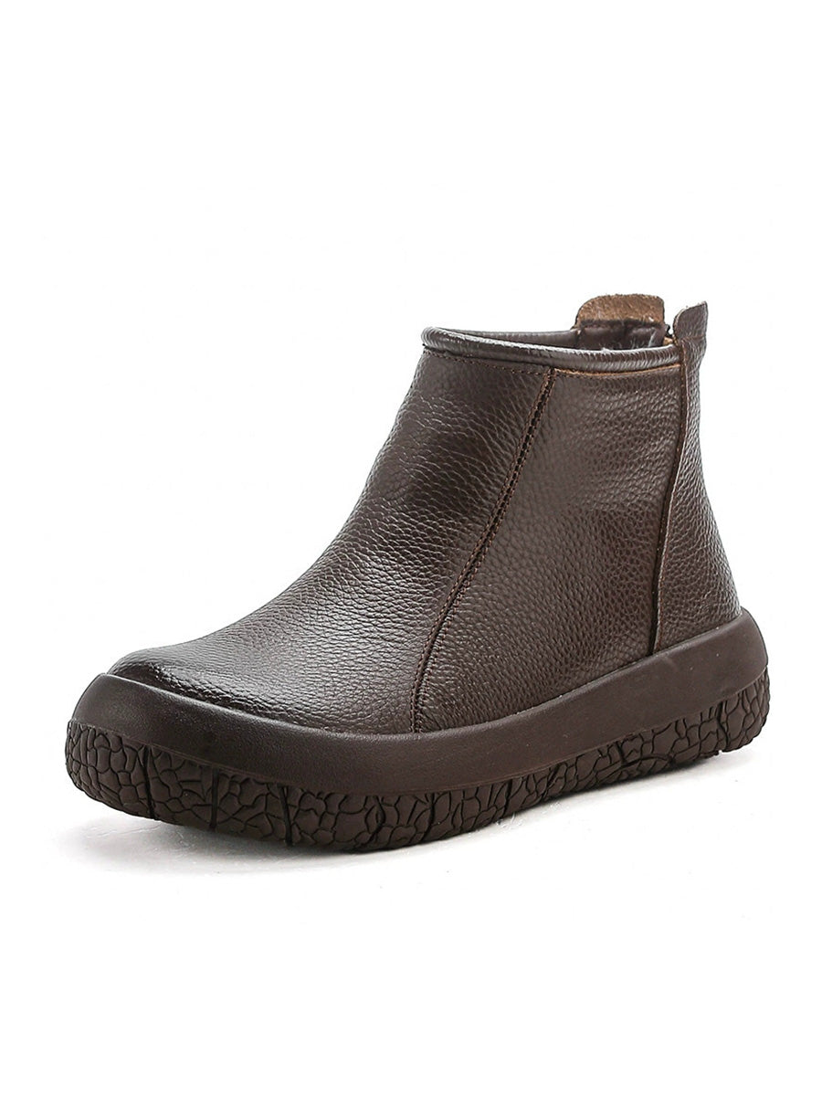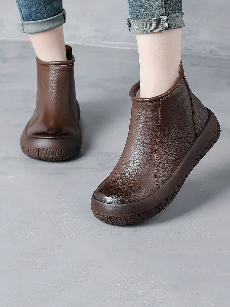 Women Winter Genuine Leather Fleece-lined Ankle Boots