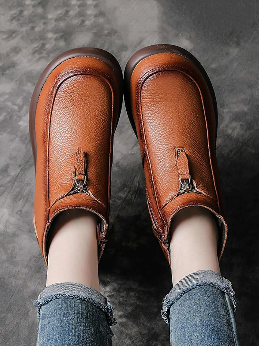 Women Winter Genuine Leather Fleece-lined Ankle Boots