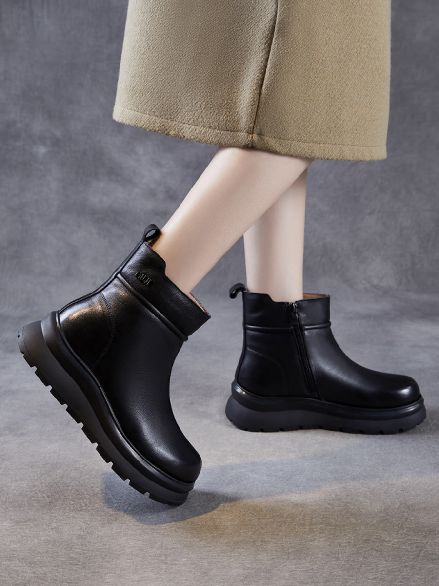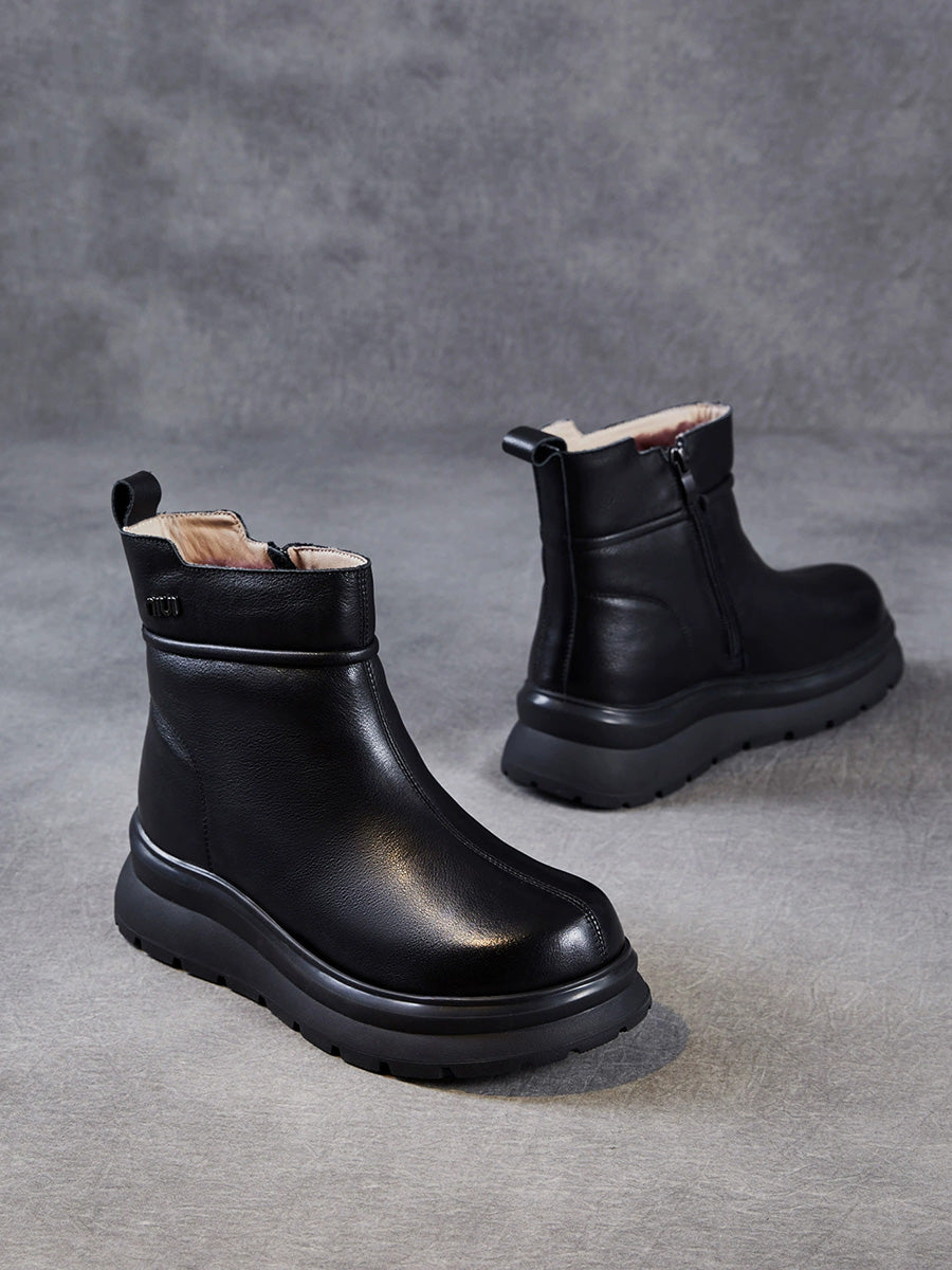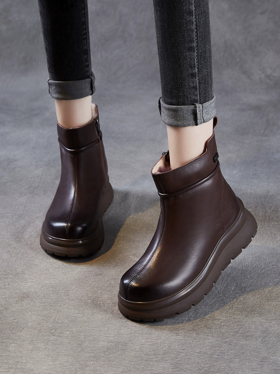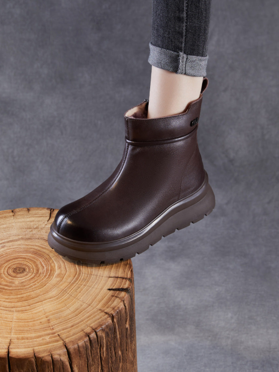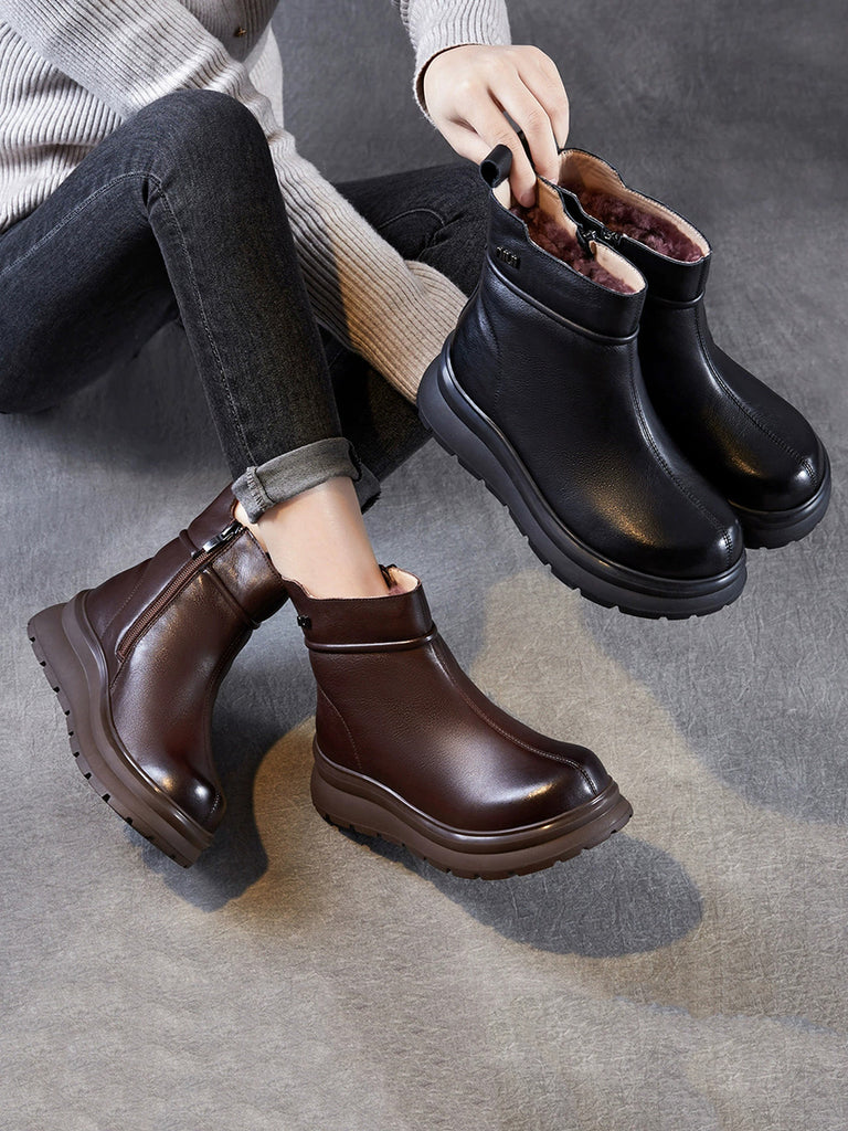 Women Winter Genuine Leather Fleece-lined Boots