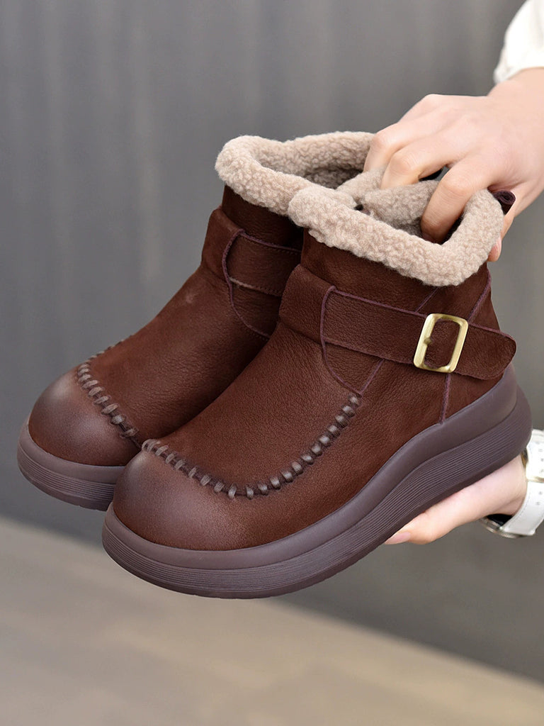 Women Winter Genuine Leather Fleece-lined Martin Boots