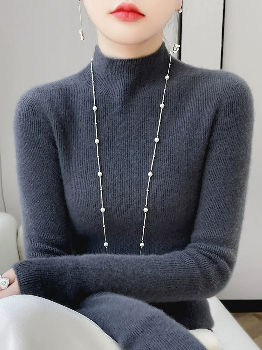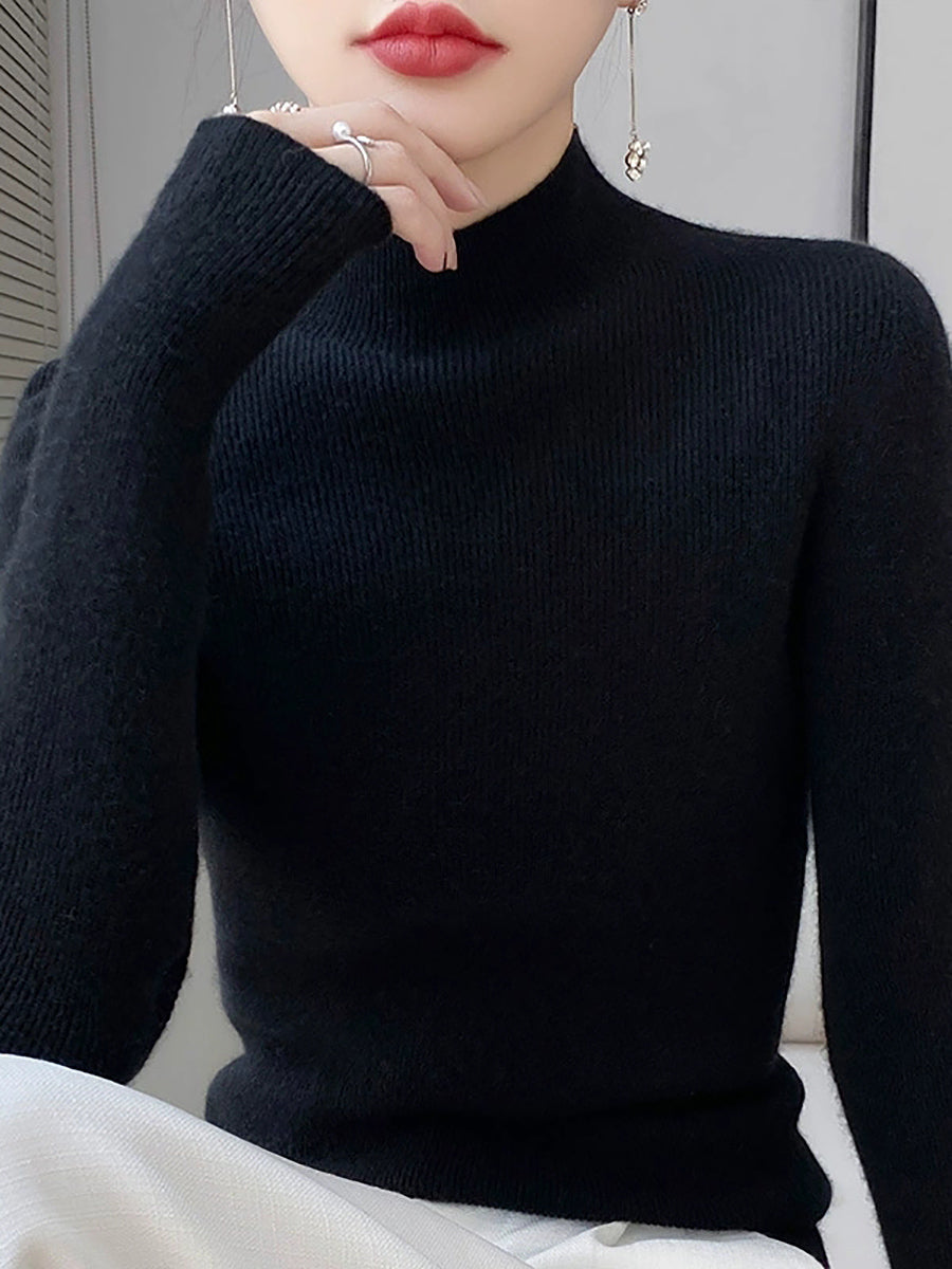 Women Winter Pure Color Wool Half-Turtleneck Sweater