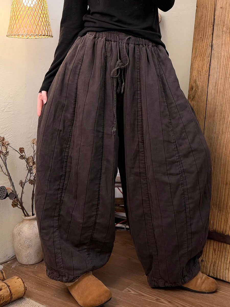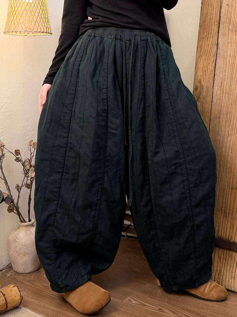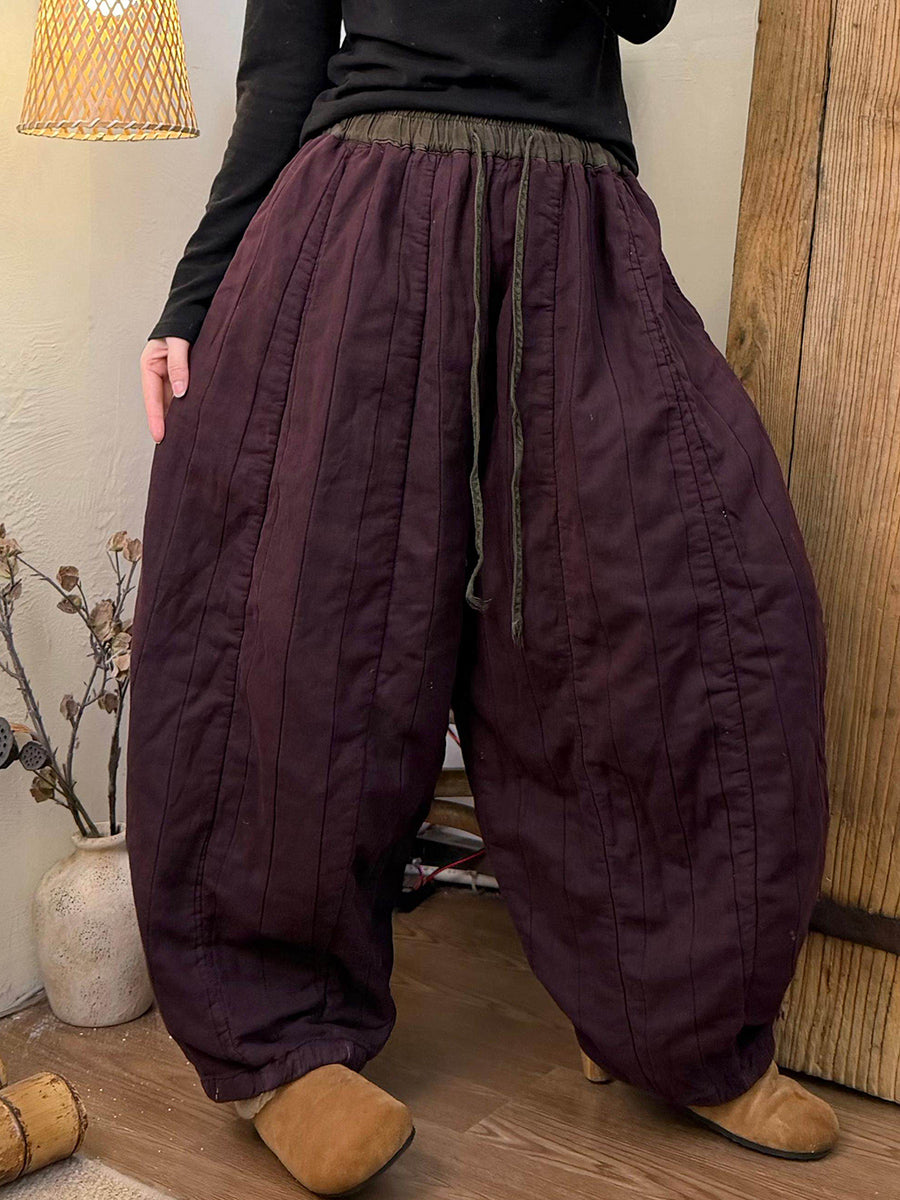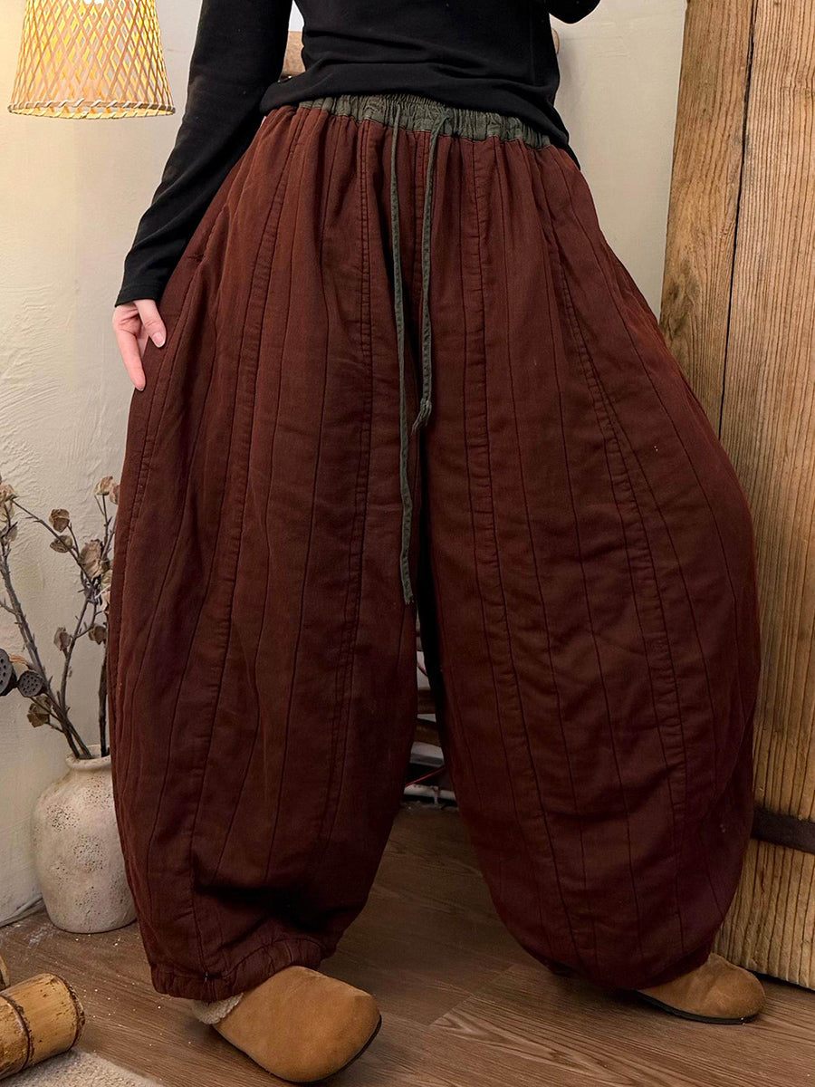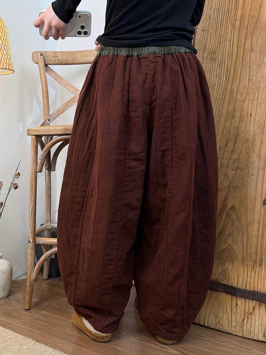 Women Winter Retro Colorblock Padded Harem Pants