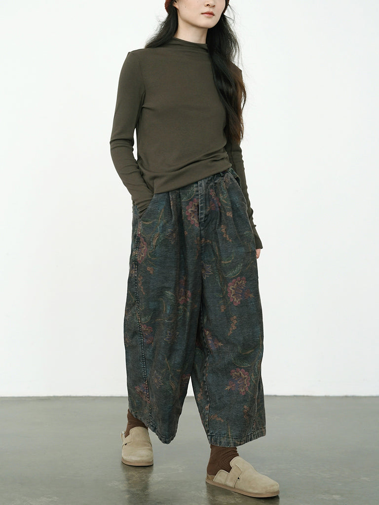 This versatile pair of pants is expertly crafted with a cotton material and adorned with a retro flower pattern, making it a stylish choice for women of all ages. Featuring an elastic waist and a wide-leg design, these pants have a vintage feel that exudes sophistication and elegance.