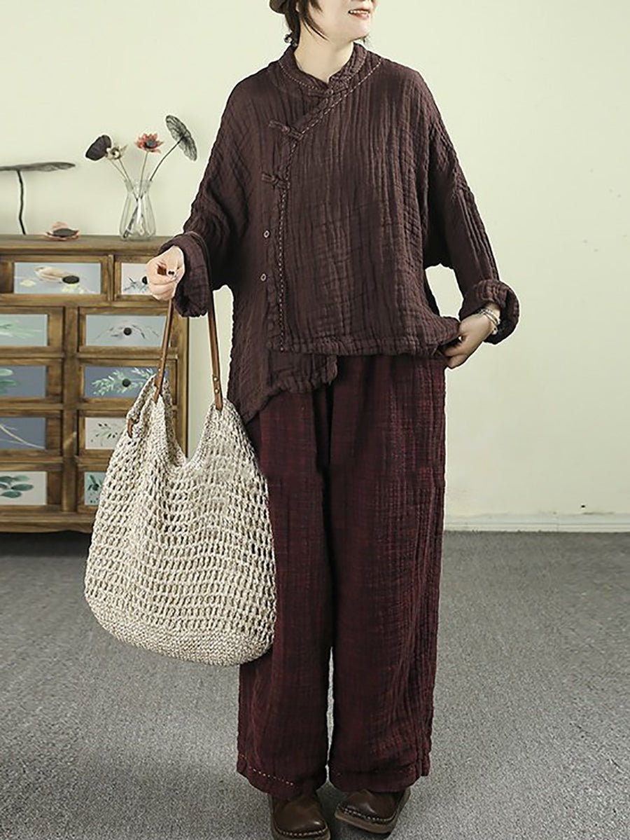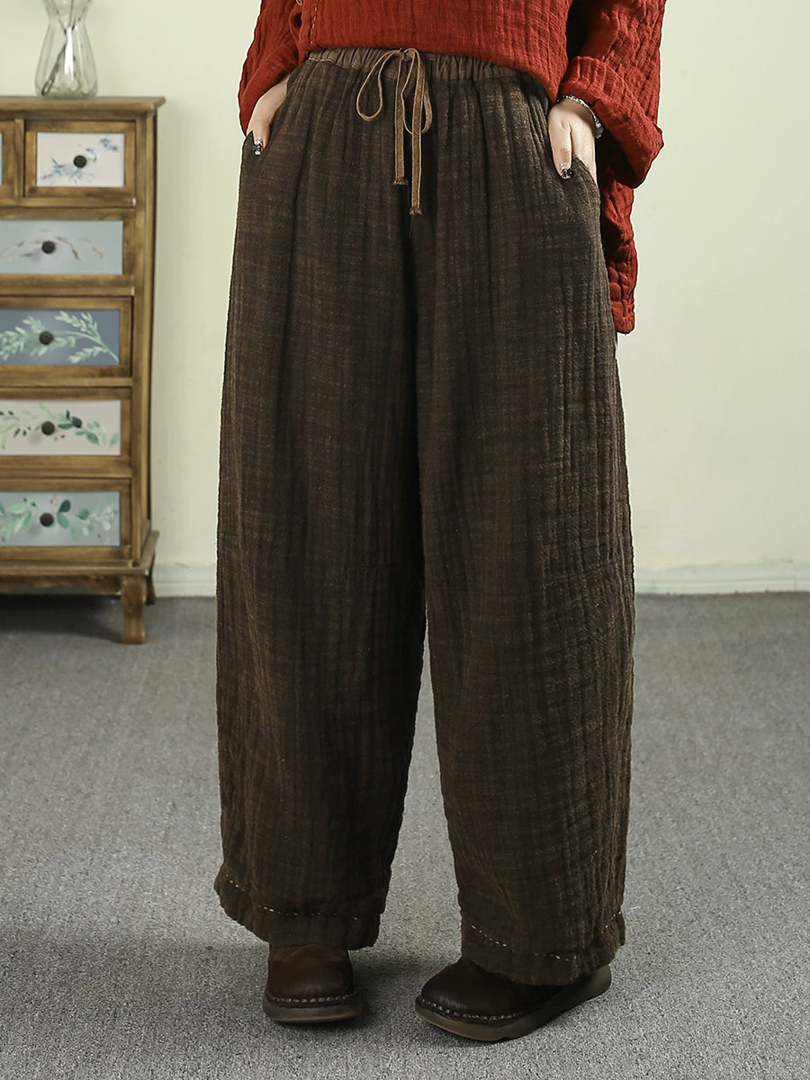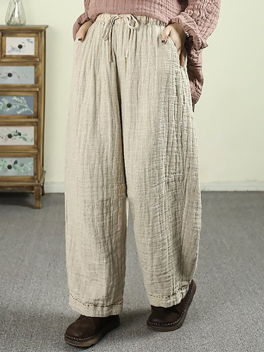 Women Winter Retro Pure Color 100%Linen Straight Pants