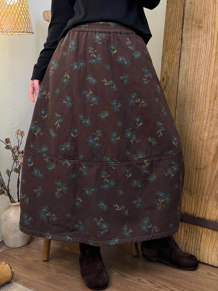 Women Winter Vintage Floral Fleece-lined Cotton Skirt